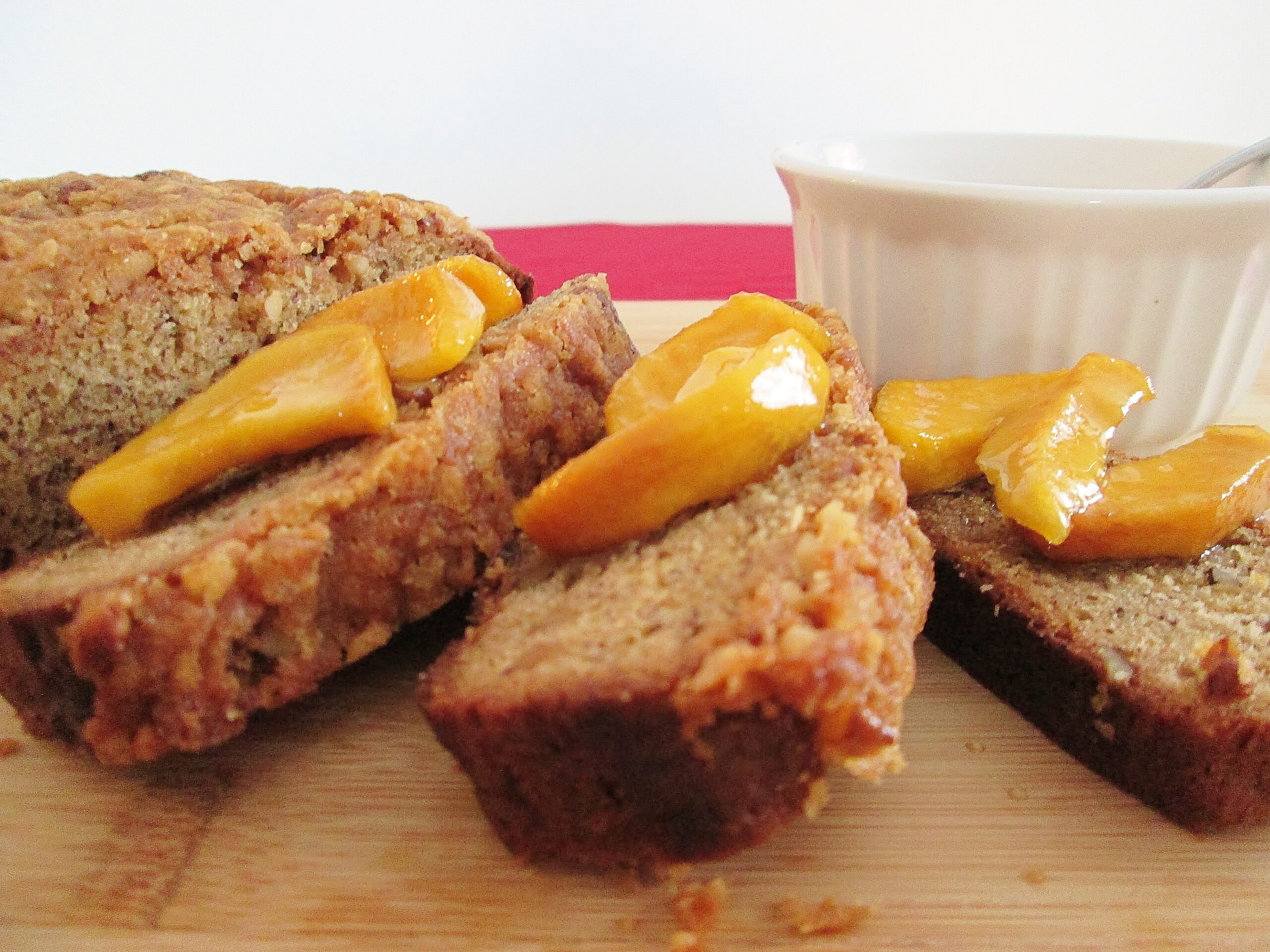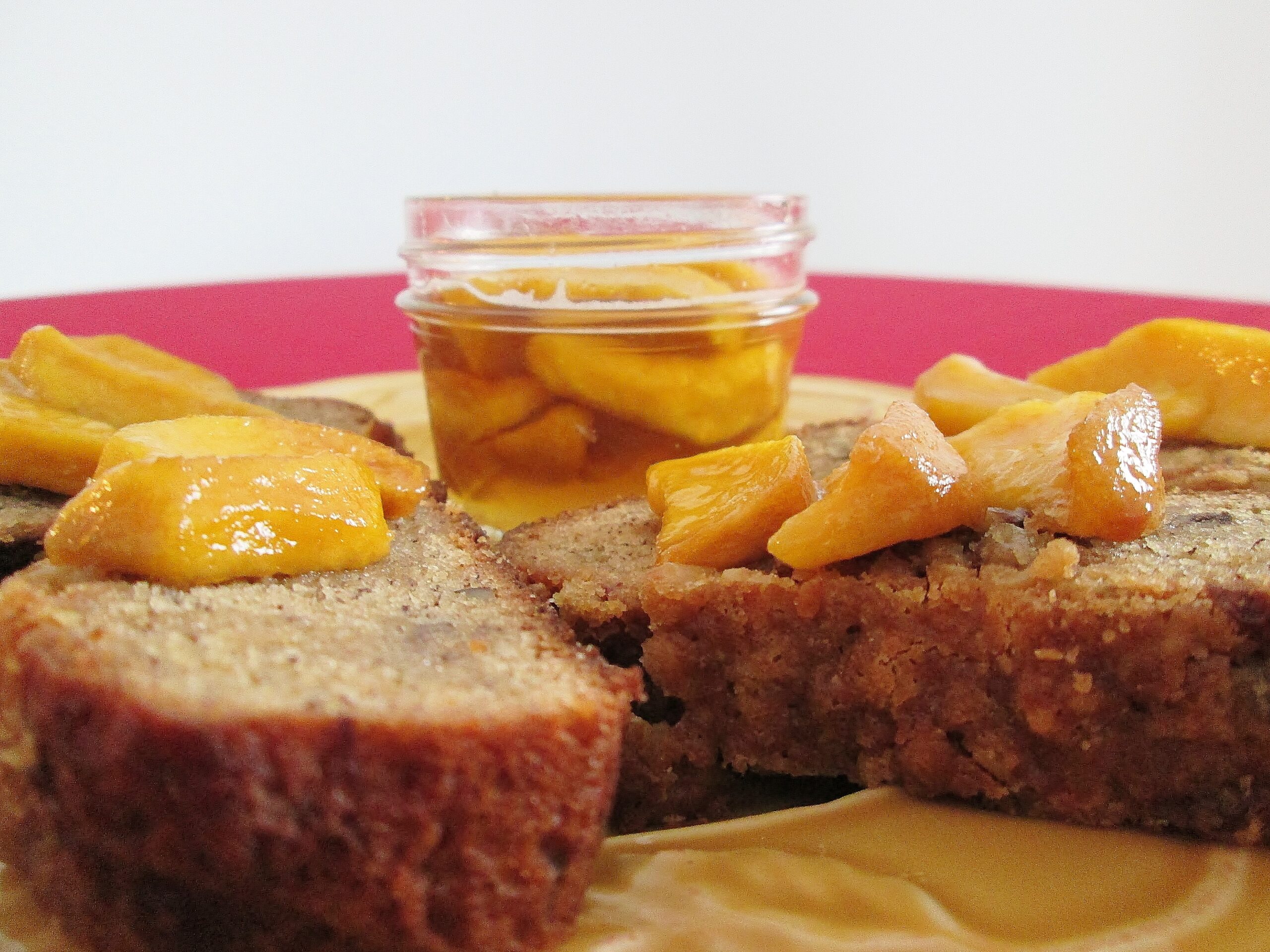 NOTE: Both the bread and the honey need to “stand” for a day before you use them. This allows the moisture in the bread to distribute more evenly and the peach flavor to really soak into the honey. I would recommend making these the day before you need them.