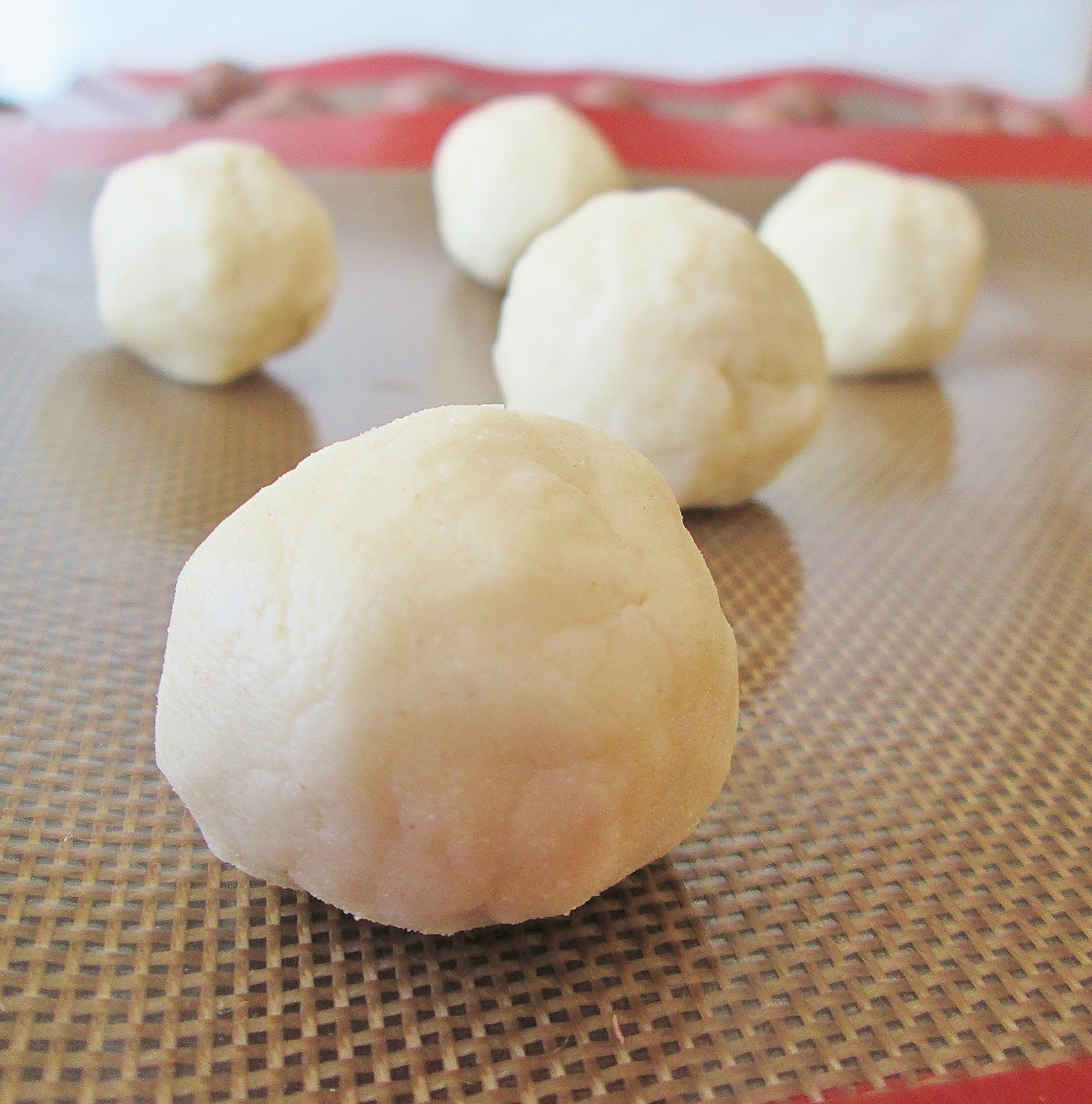 Try to avoid rolling the dough when shaping the balls, as that can apply too much pressure, causing the balls to crack. Instead, pass the dough from hand to hand, shaping it into a ball with light pressure.