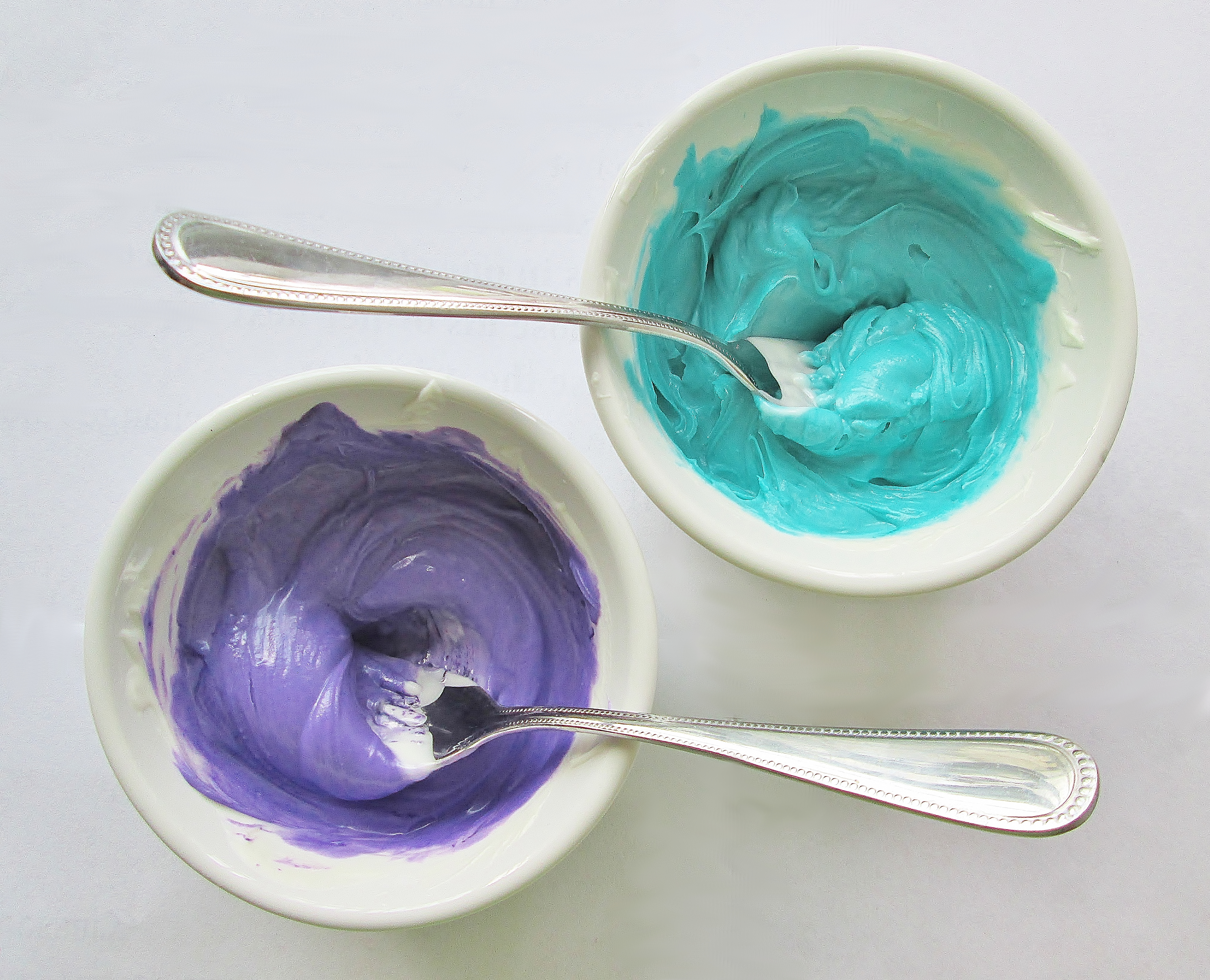 - purple and teal gel food coloring
