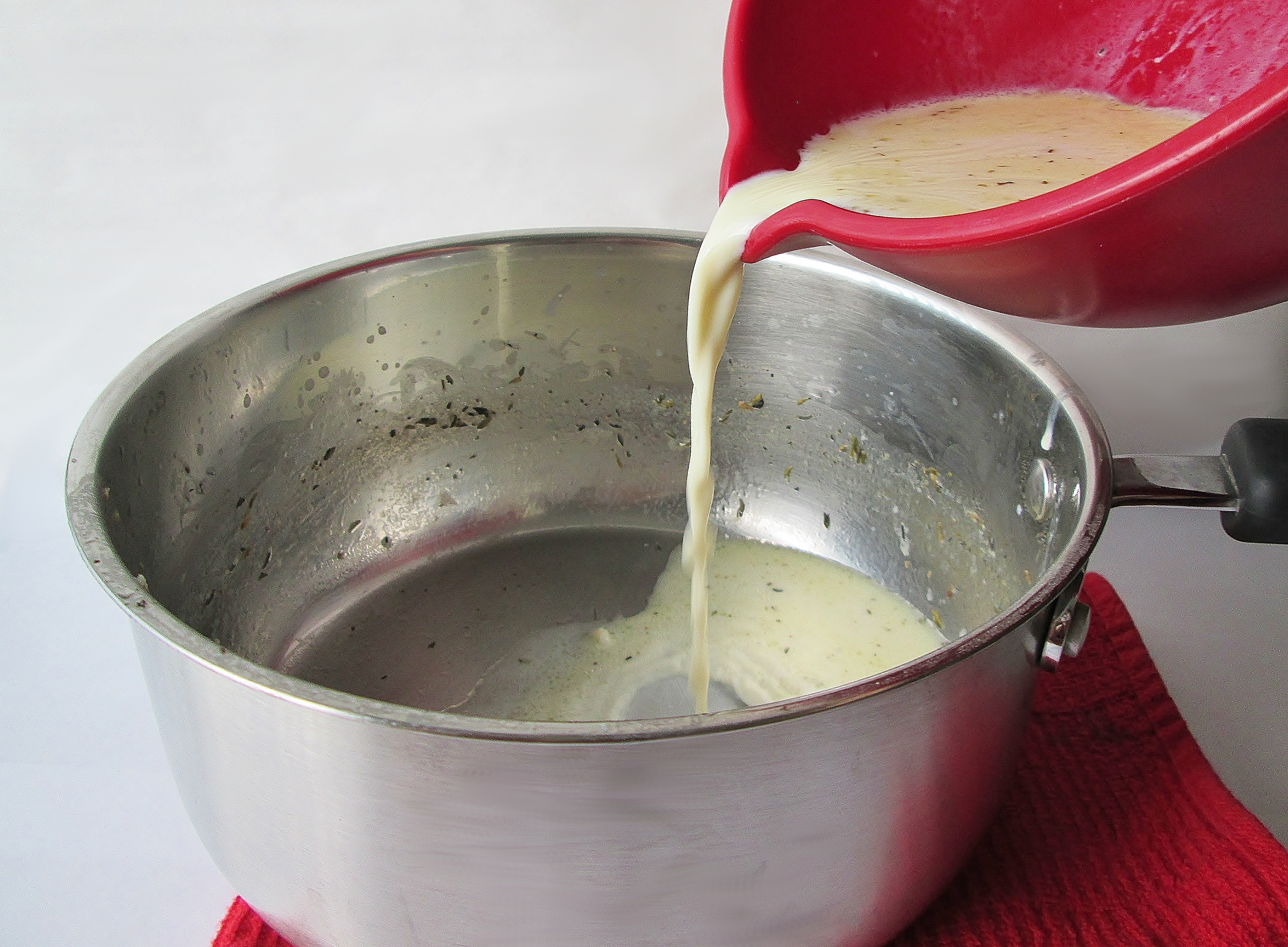 - Turn off the heat and stir in the cream and nutmeg until you get a slightly thinner consistency and lighter color. Season with salt and extra pepper to taste (I used 1 tsp salt and 1/4 pepper).