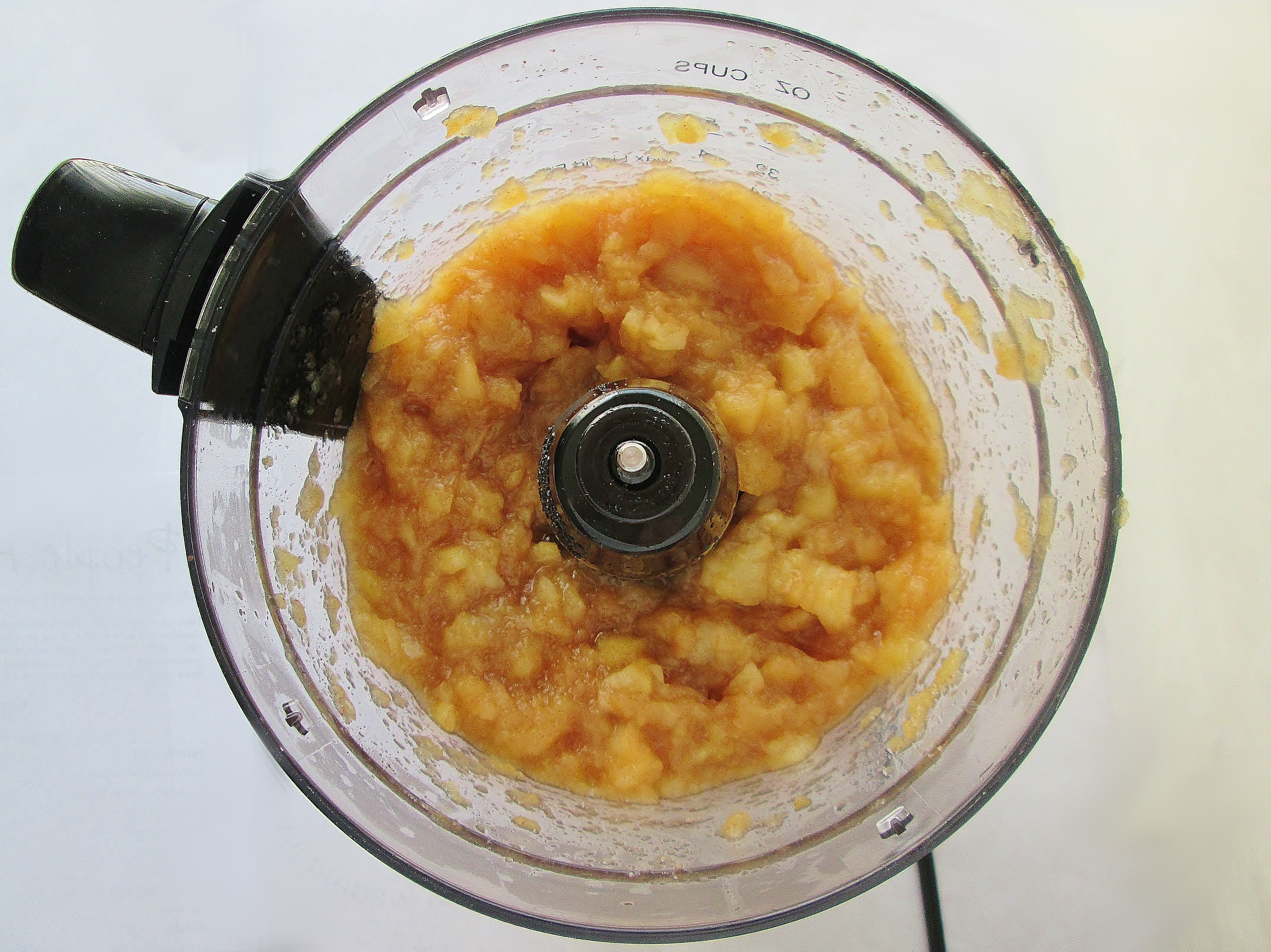 - Pour half your apple mix into a food processor or blender and blend until you reach your desired consistency. Since I like mine chunky, I just held the dial of my food processor on pulse for about 20 seconds, stopped to scrape the sides and stir a little, then held the pulse for another 10 seconds. Transfer to a large jar or other airtight container.