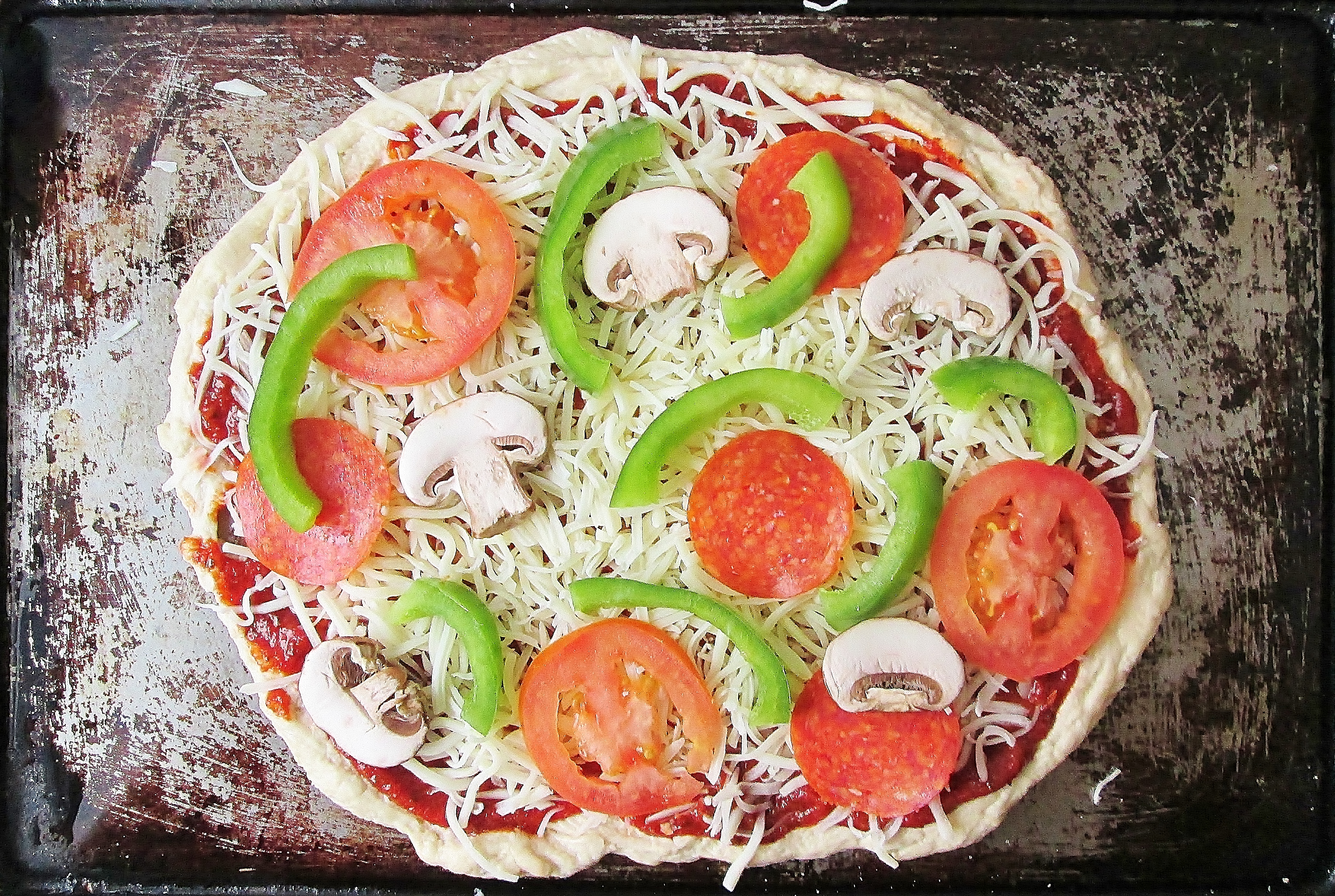 - 1 serving of pizza dough (I used a Pillsbury pizza crust, but to each their own)