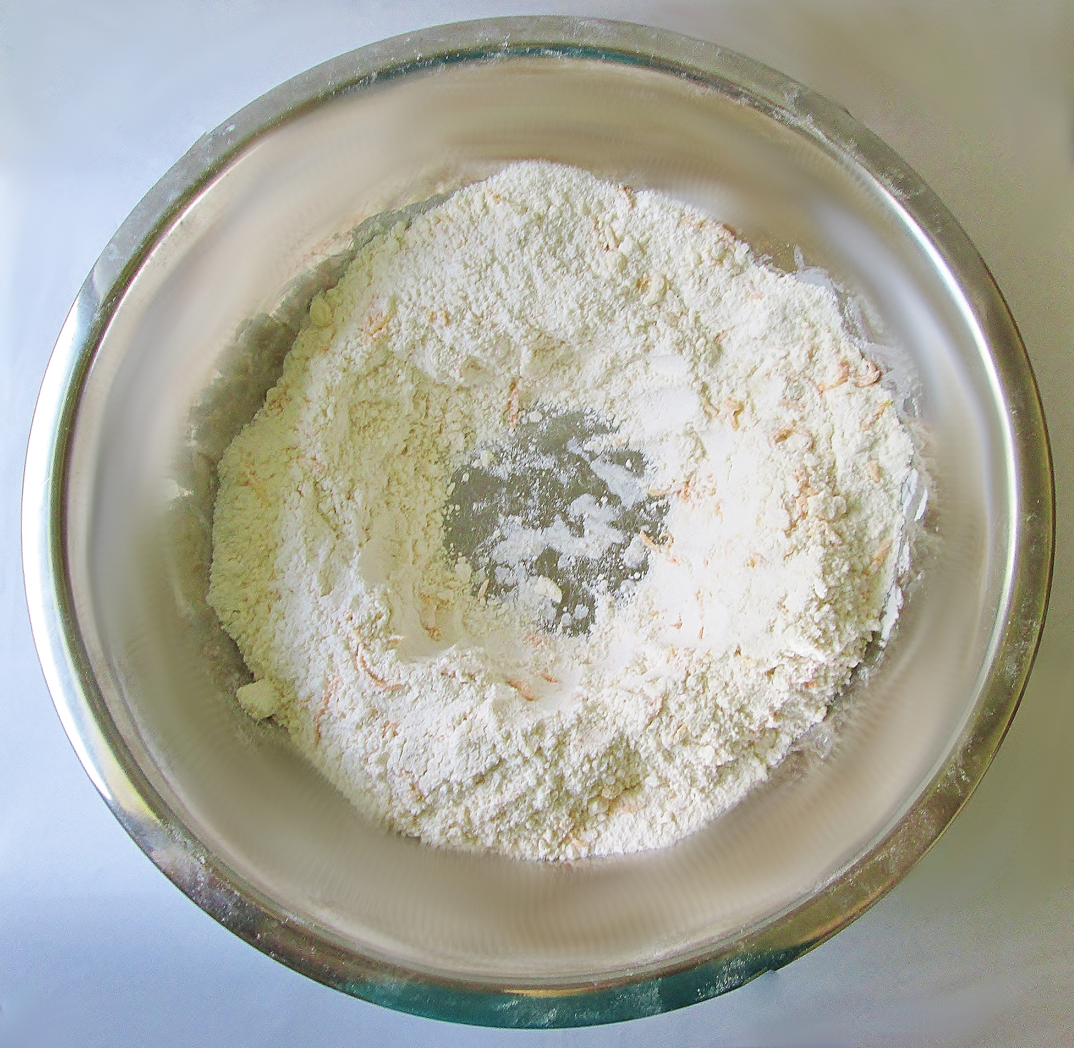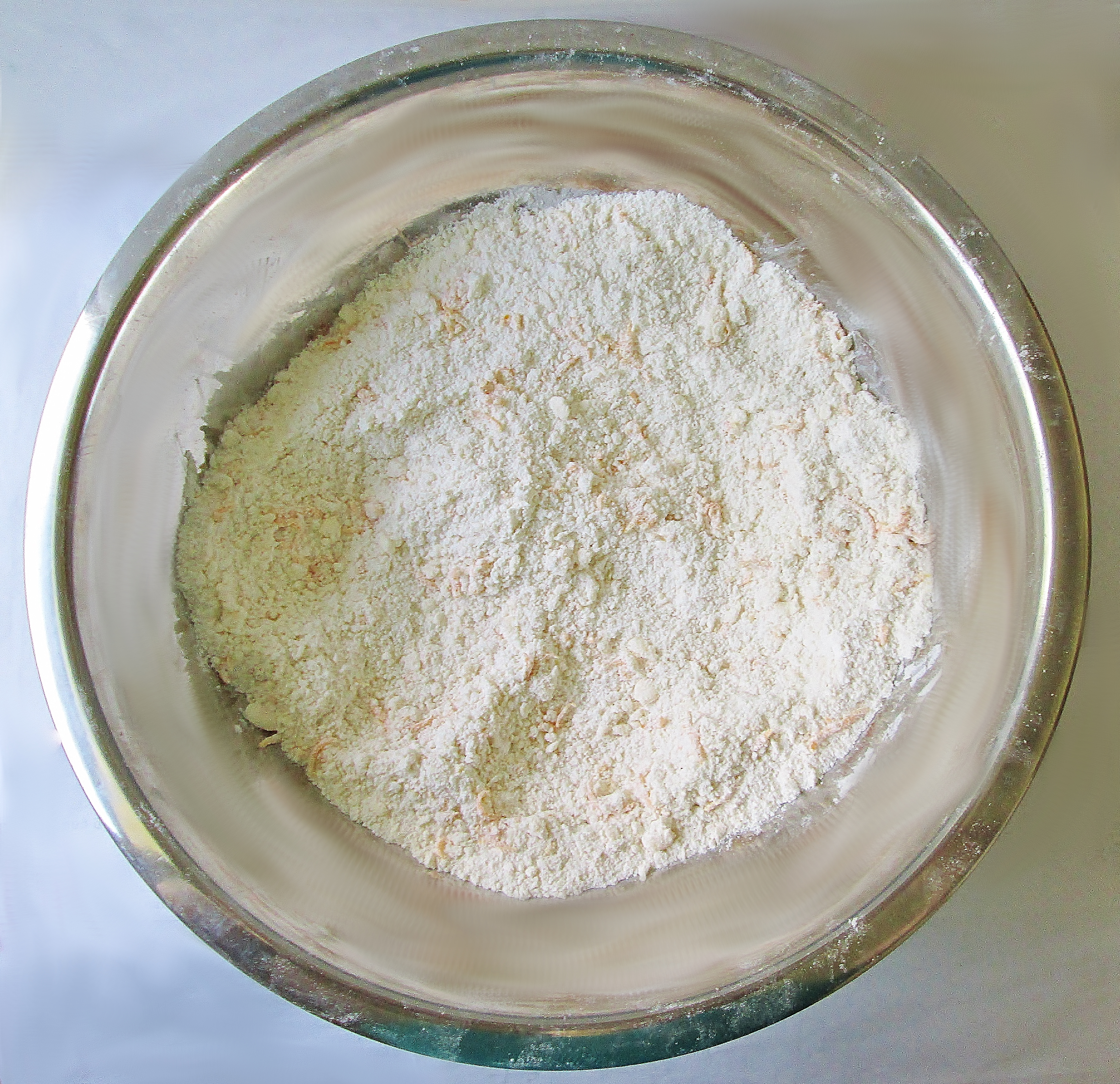 - Whisk the flour, sugar, baking powder, baking soda, and salt together in a large bowl. Cut the butter into the flour mix and stir in the zest. Make a well in the middle.