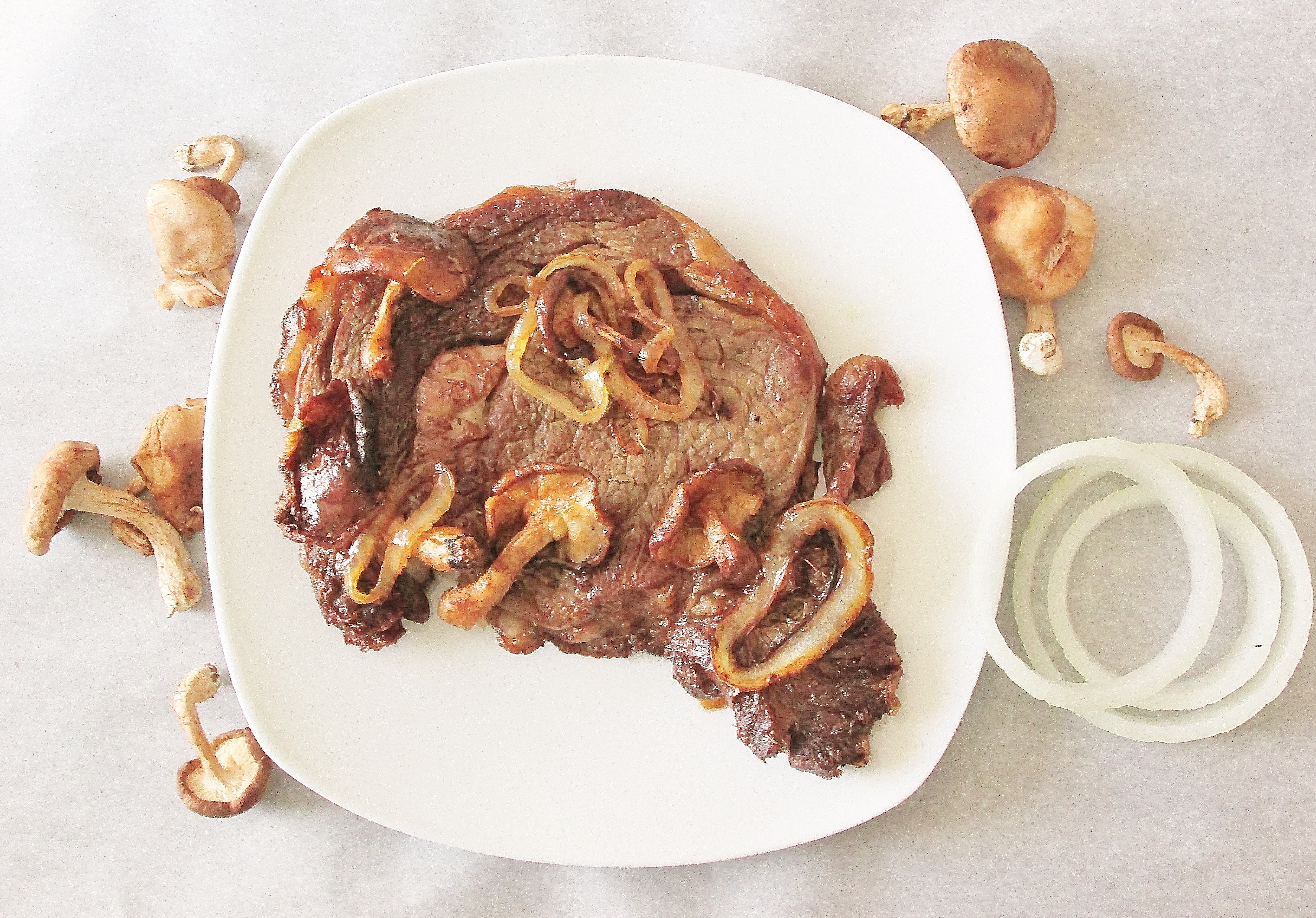 - 1/2 lb boneless steak cut into 2 quarter-pound portions (I used boneless chuck eye steak)