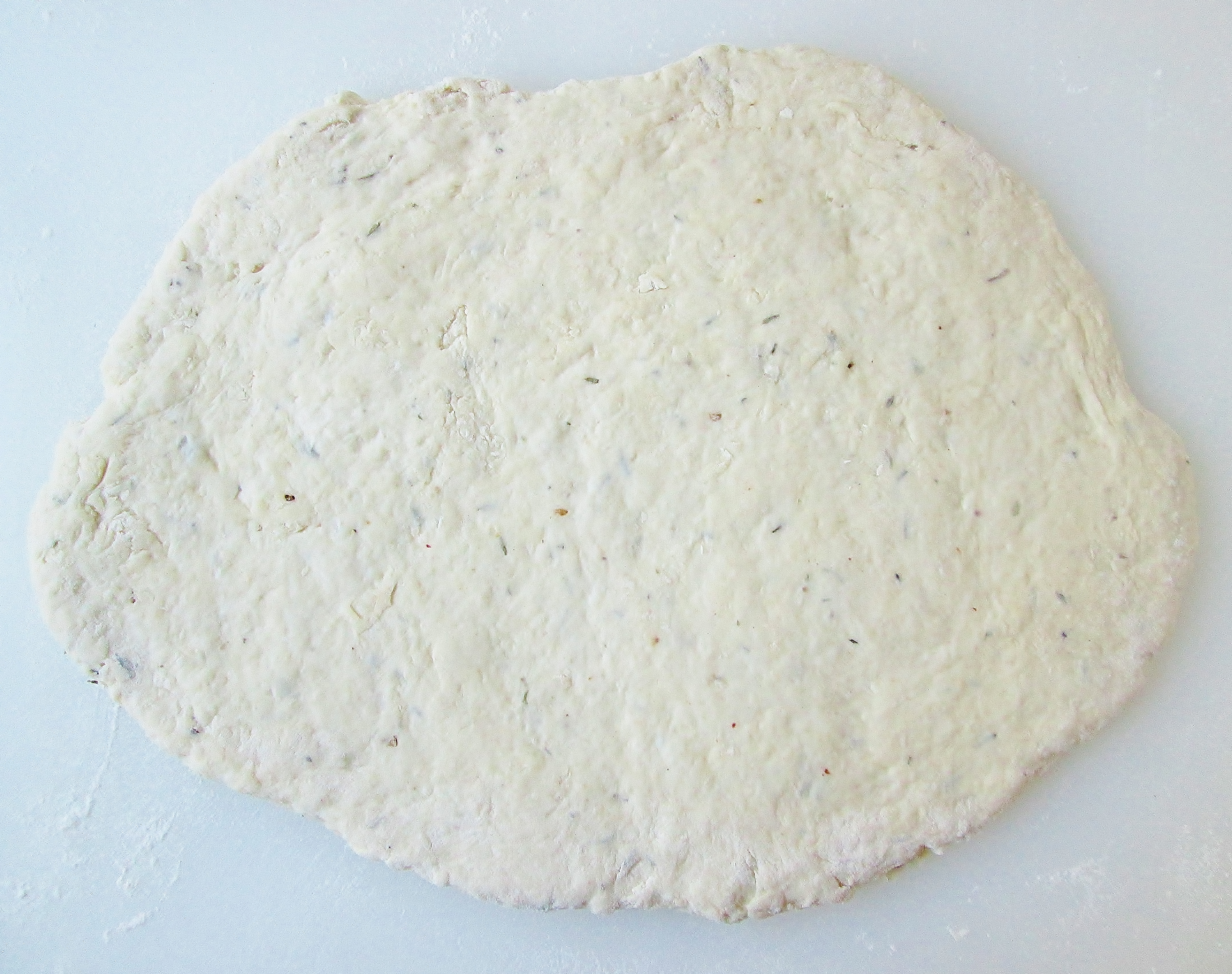 - On a floured surface, roll out your dough to 1/2-inch thickness. Square off the dough and cut into equal portions. I cut mine into 2 1/2″ x 3″ rectangles.