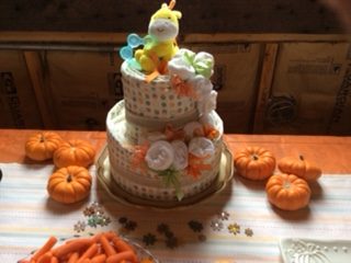 The shower that my mom and sister threw was pumpkin-themed (since we had it the weekend after Thanksgiving), and my sister had a great idea: instead of cards, have people bring a copy of their favorite book from their childhood! As such, the baby now has an impressive library of highly recommended books!