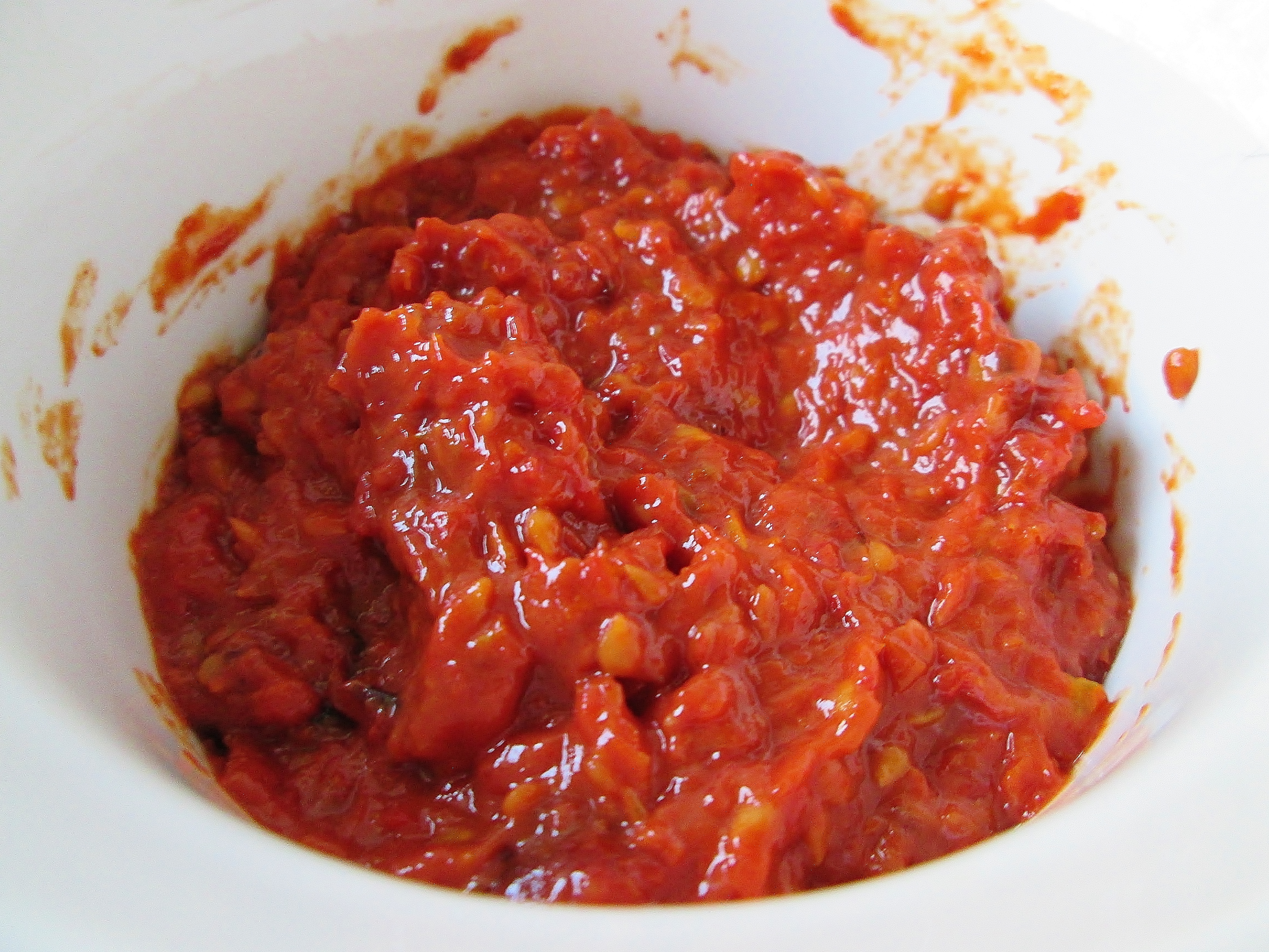 - Preheat your oven to 375°. Cover 2 baking sheets with wire racks. Cut your tomatoes in half and arrange them on the racks. Drizzle with olive oil and sprinkle on the salt (it’s ok if a bit falls through the gaps in the rack). Roast for 30-35 minutes—rotating the pans halfway through—or until a few of the tomatoes are just beginning to darken around the edges. Transfer the tomatoes to a blender. Add the apple cider vinegar and cayenne. Blend until smooth and taste. Add extra vinegar, salt, and/or cayenne if necessary (I didn’t add any extra, but I also wanted just a hint of heat). Transfer the ketchup to a small bowl and set aside.