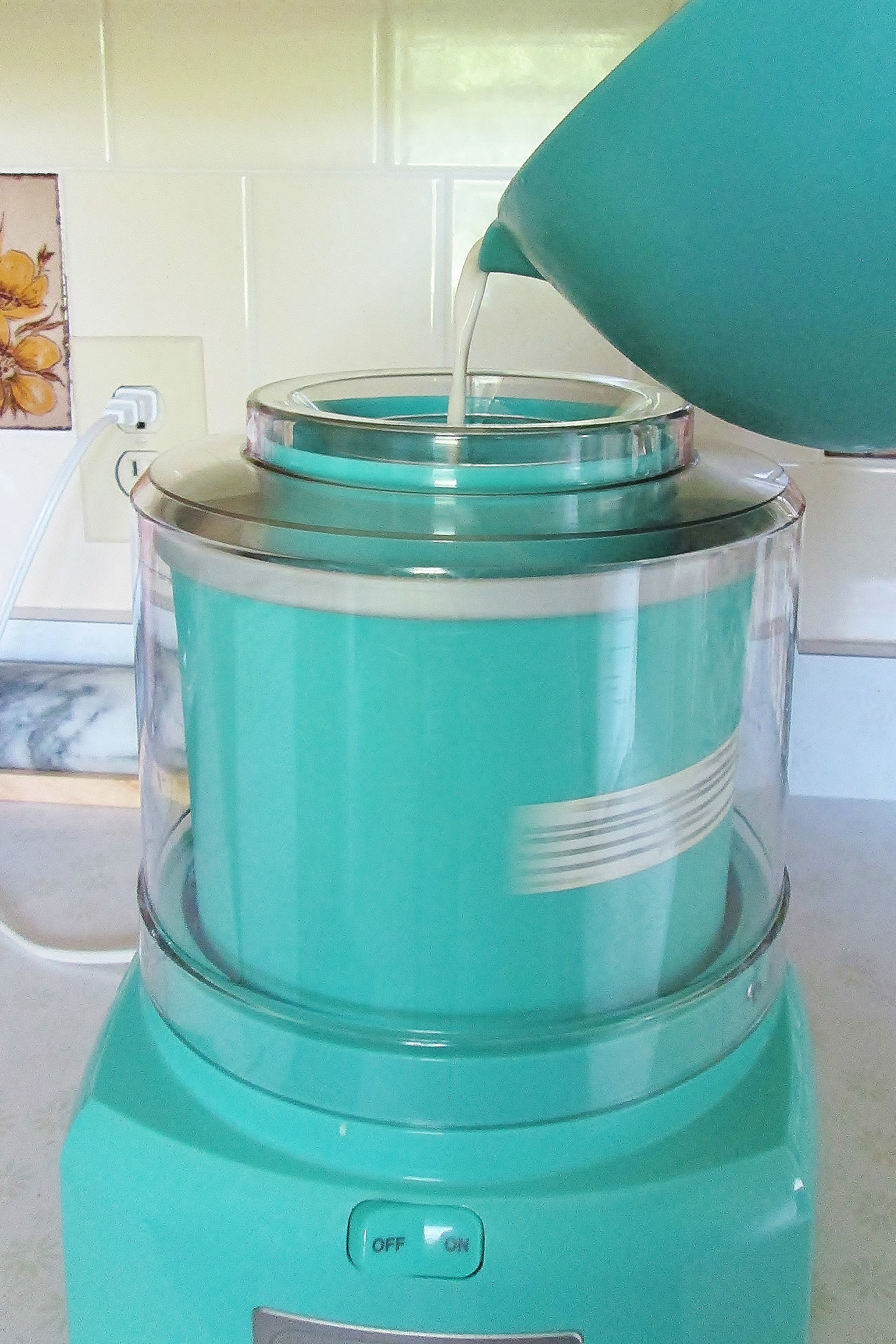 - Set up your ice cream maker and turn it on. Pour in the ice cream base and let it mix for 15-20 minutes or until it reaches the desired consistency.