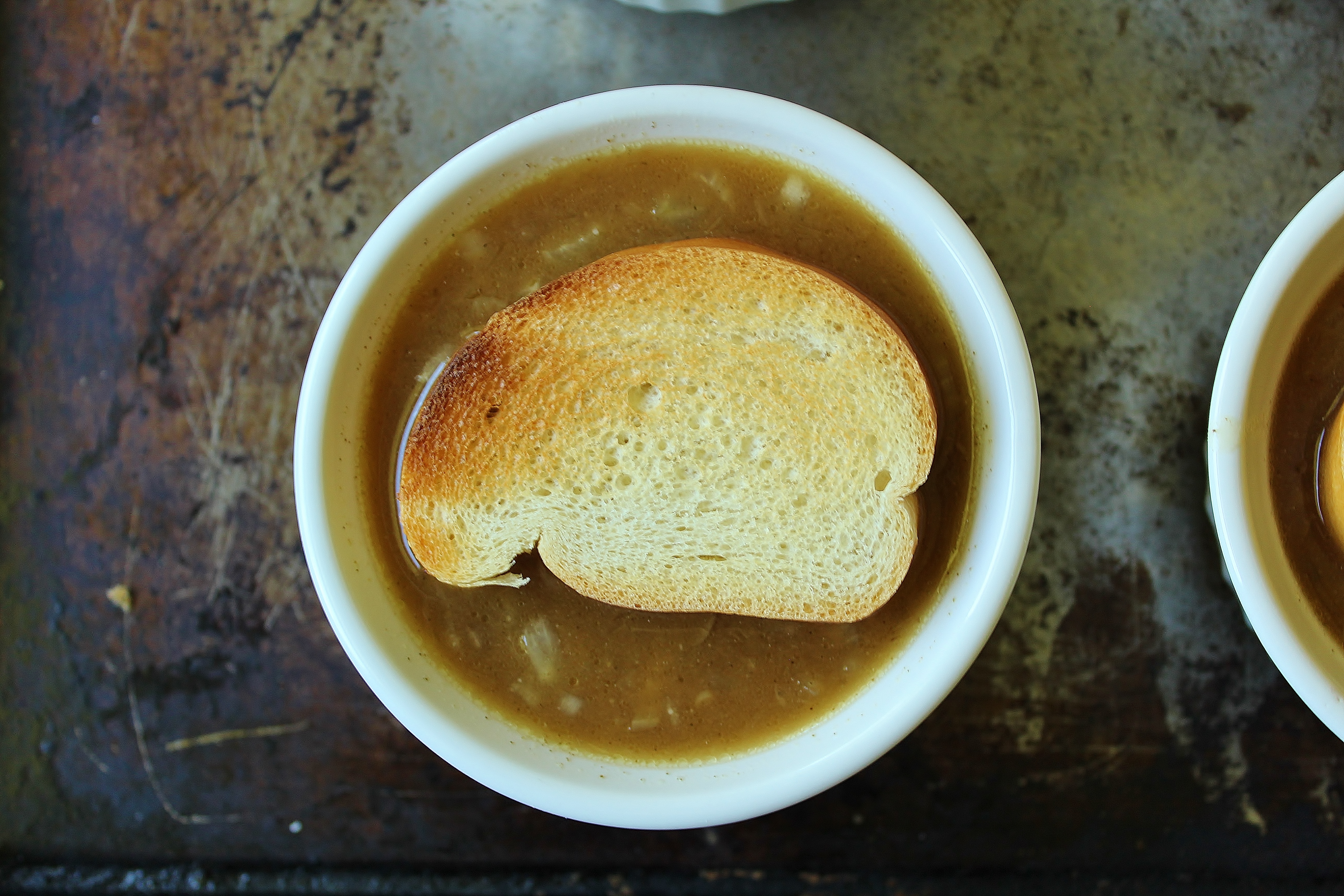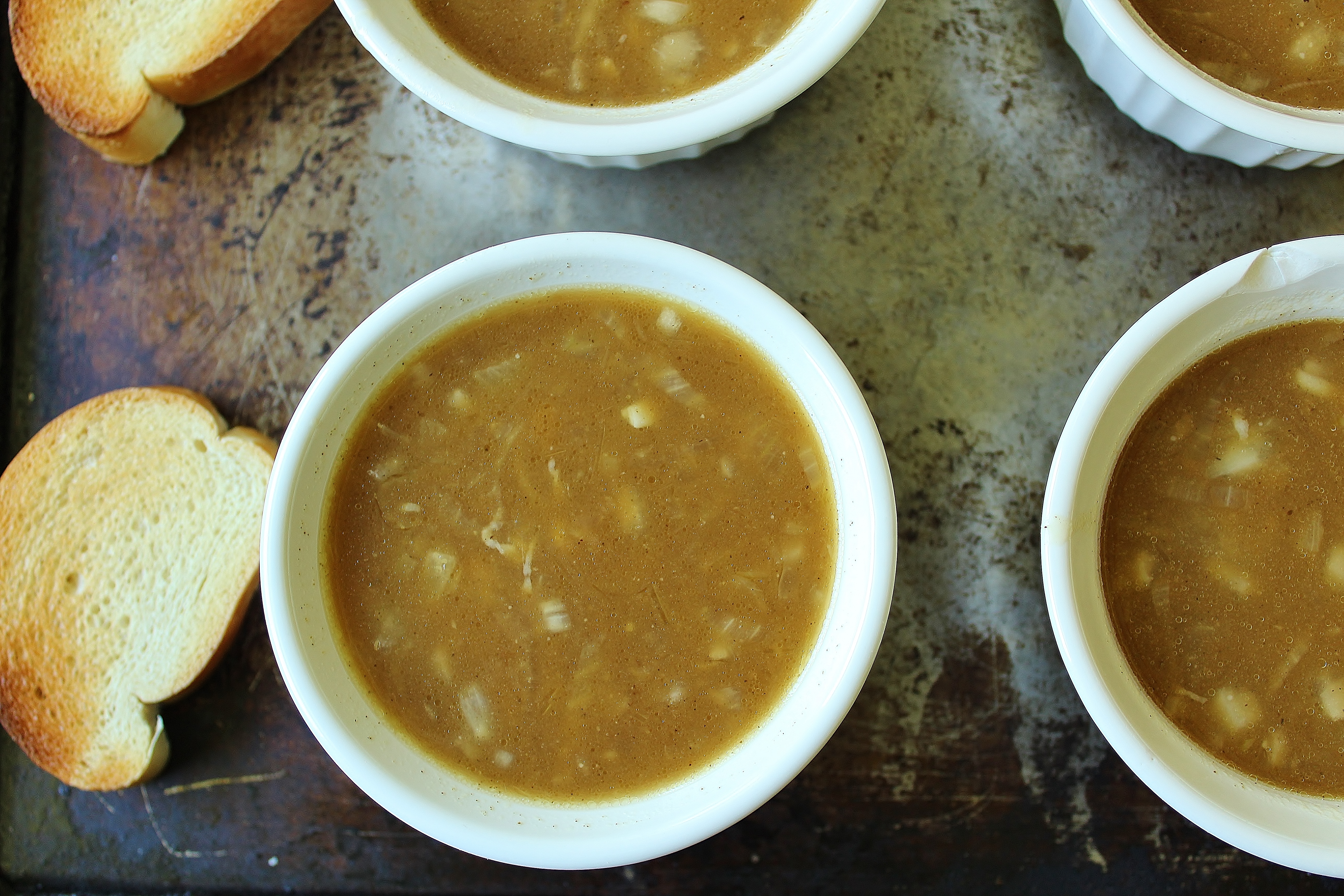 The base itself has a robust, beefy (and of course onion-y) flavor with plenty of texture from the grated fresh onion you add just before ladling it out. With the toasted bread and broiled cheese on top, you wind up with quite the hearty side dish.