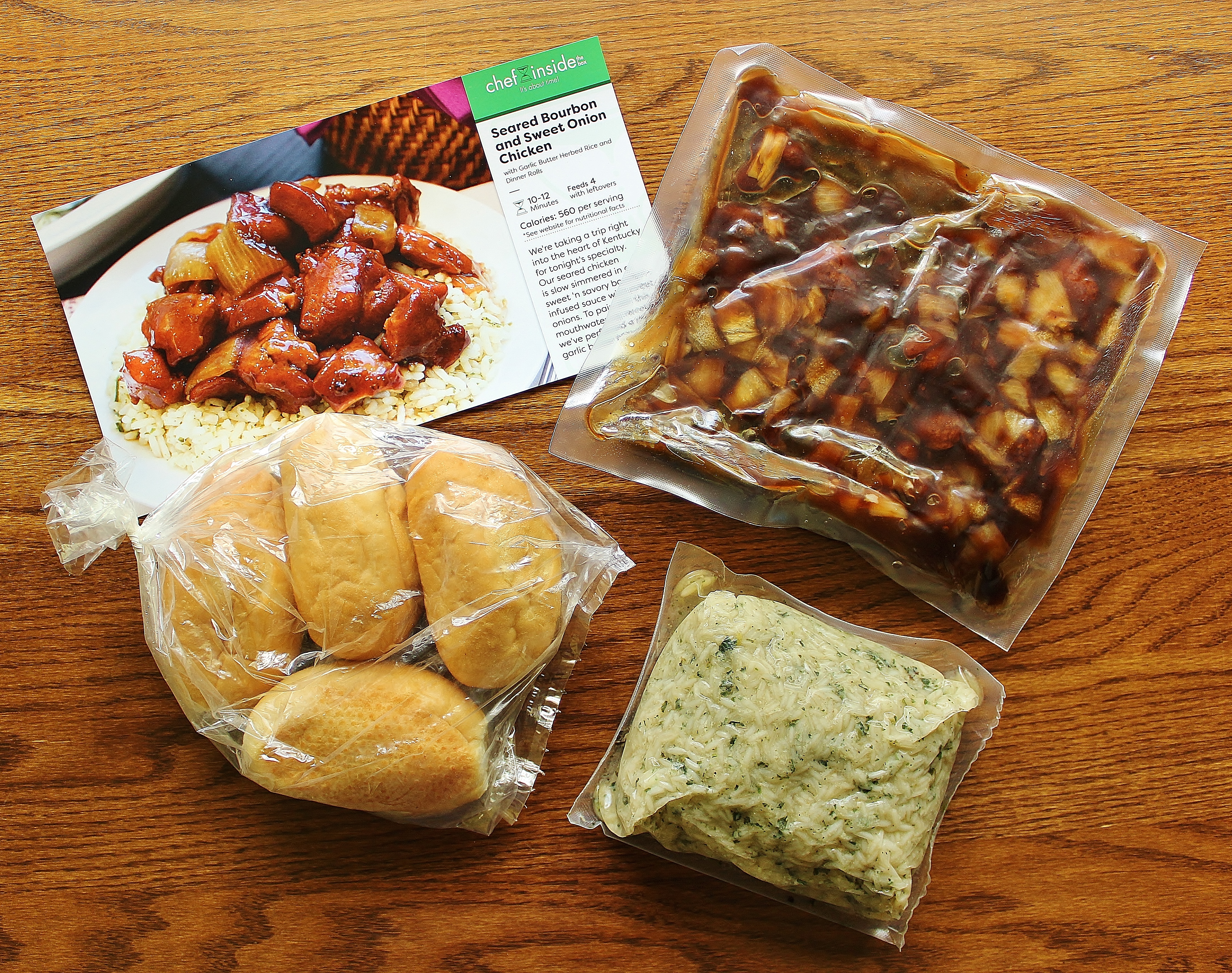 This was an “express” dish (designed to be super fast and use minimal dishes). All we had to do was microwave two packages and heat the rolls for a few minutes in the oven.