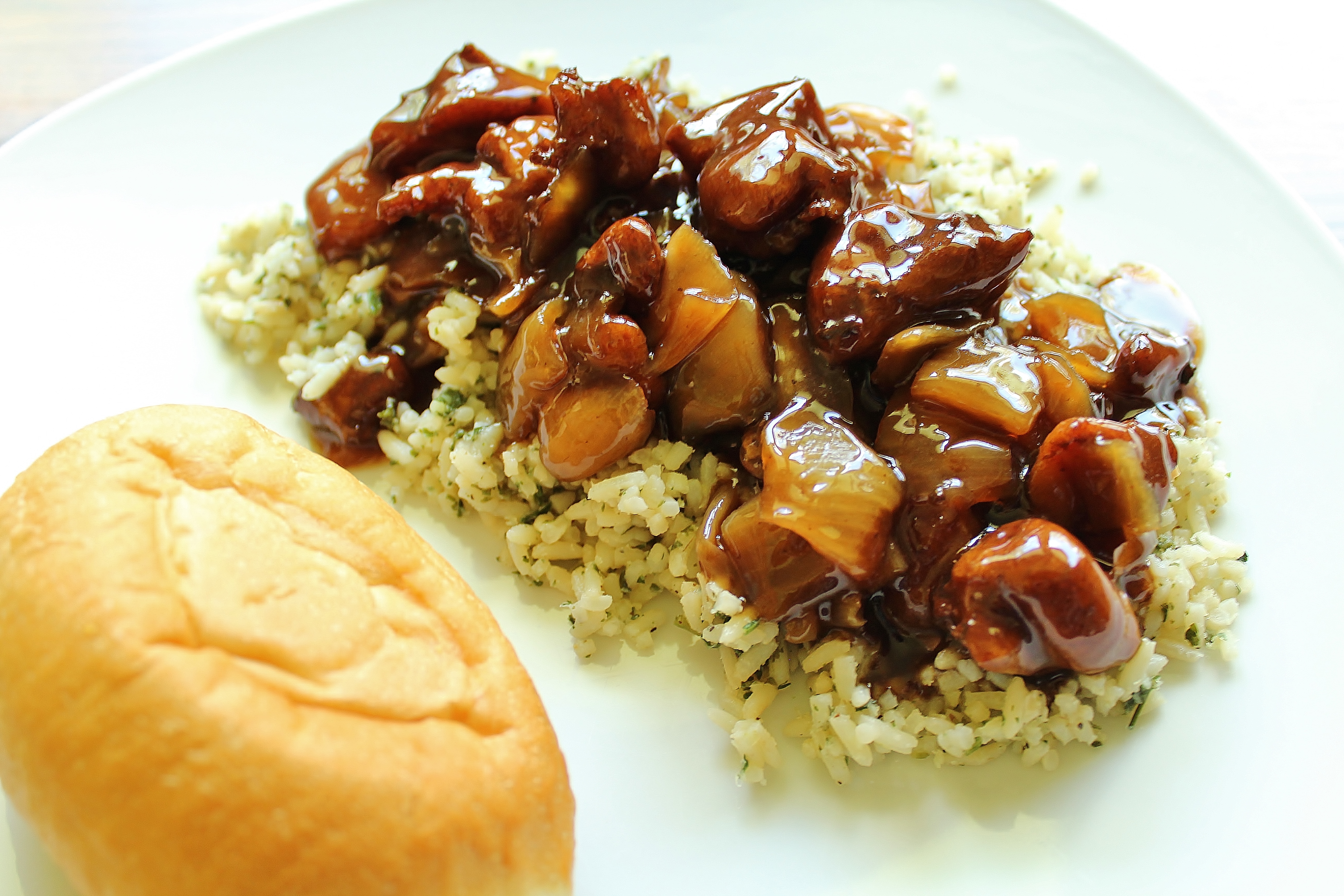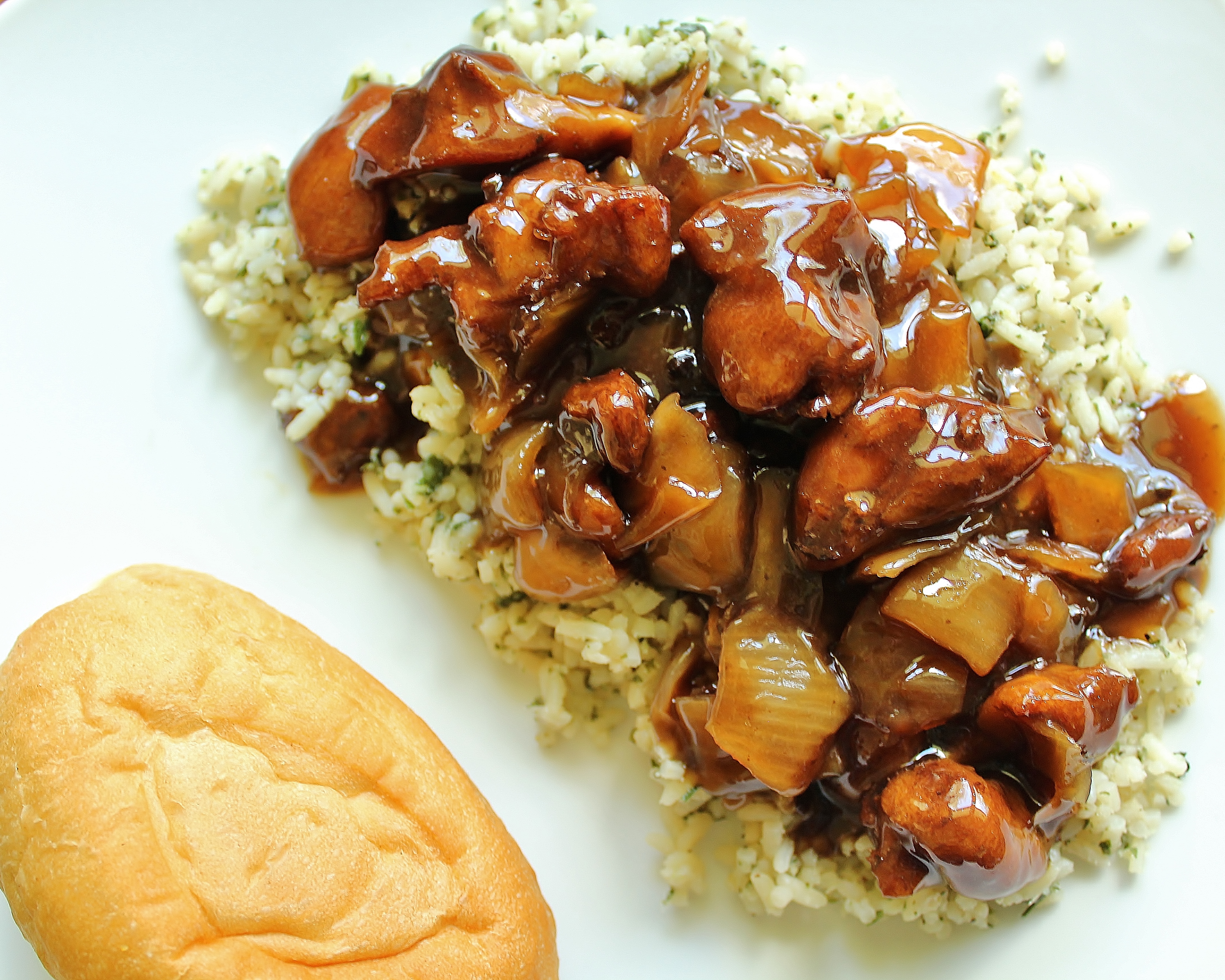 with Garlic Butter Herbed Rice and Dinner Rolls