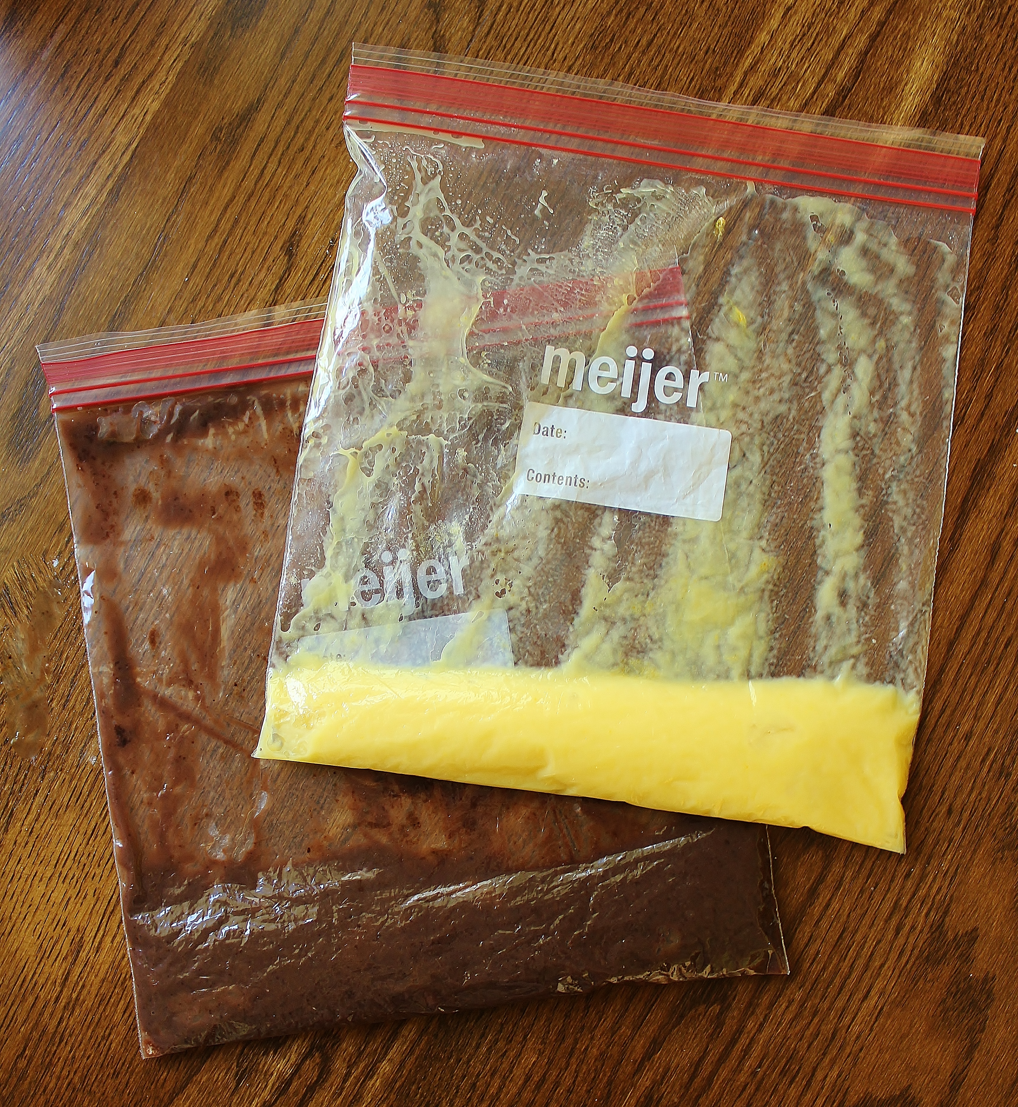 - Add your pudding powder and powdered milk to a 1-gallon ziplock bag. Stir them around inside the bag to make sure they’re evenly dispersed.