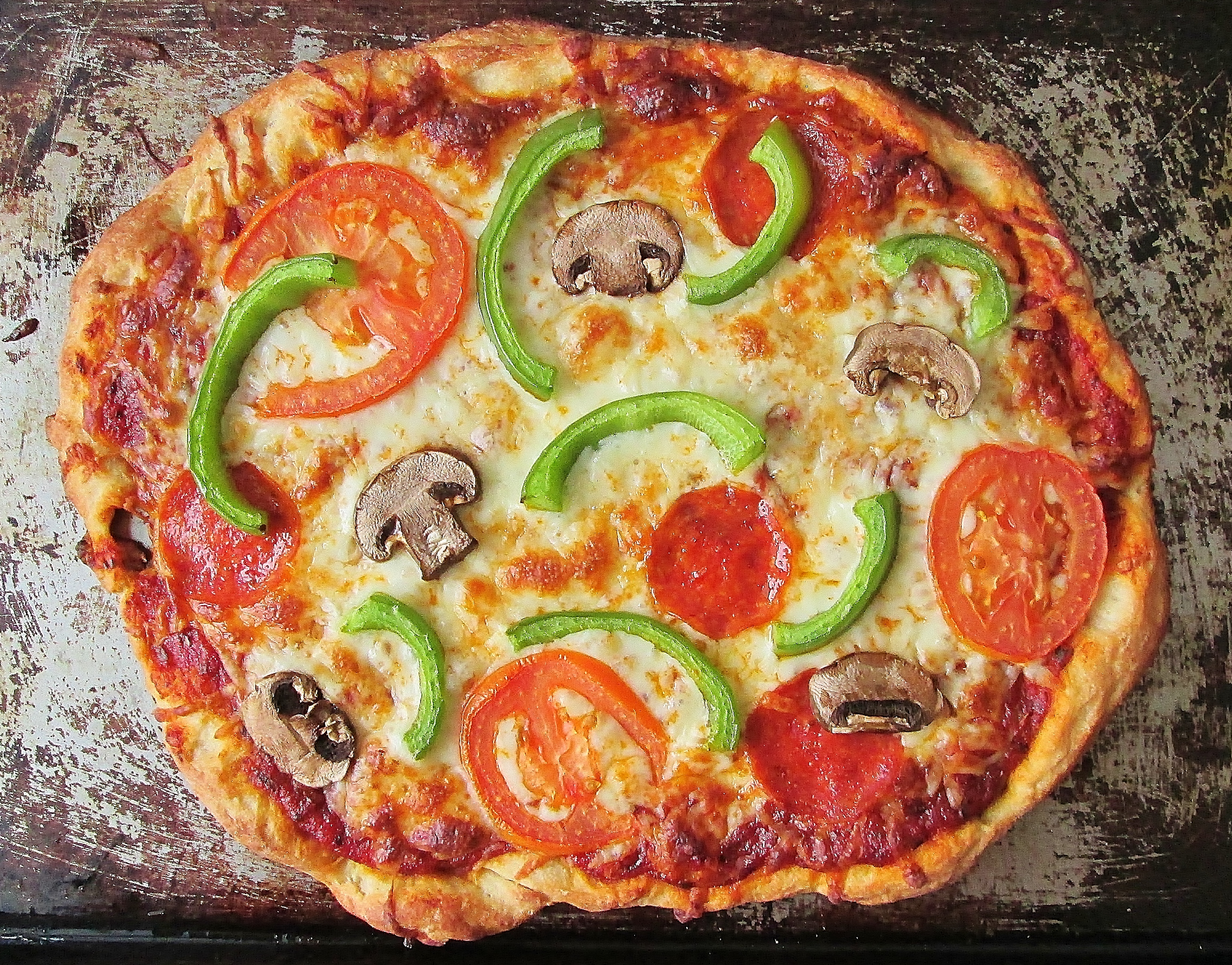 - 1 11-oz can thin crust Pillsbury pizza dough