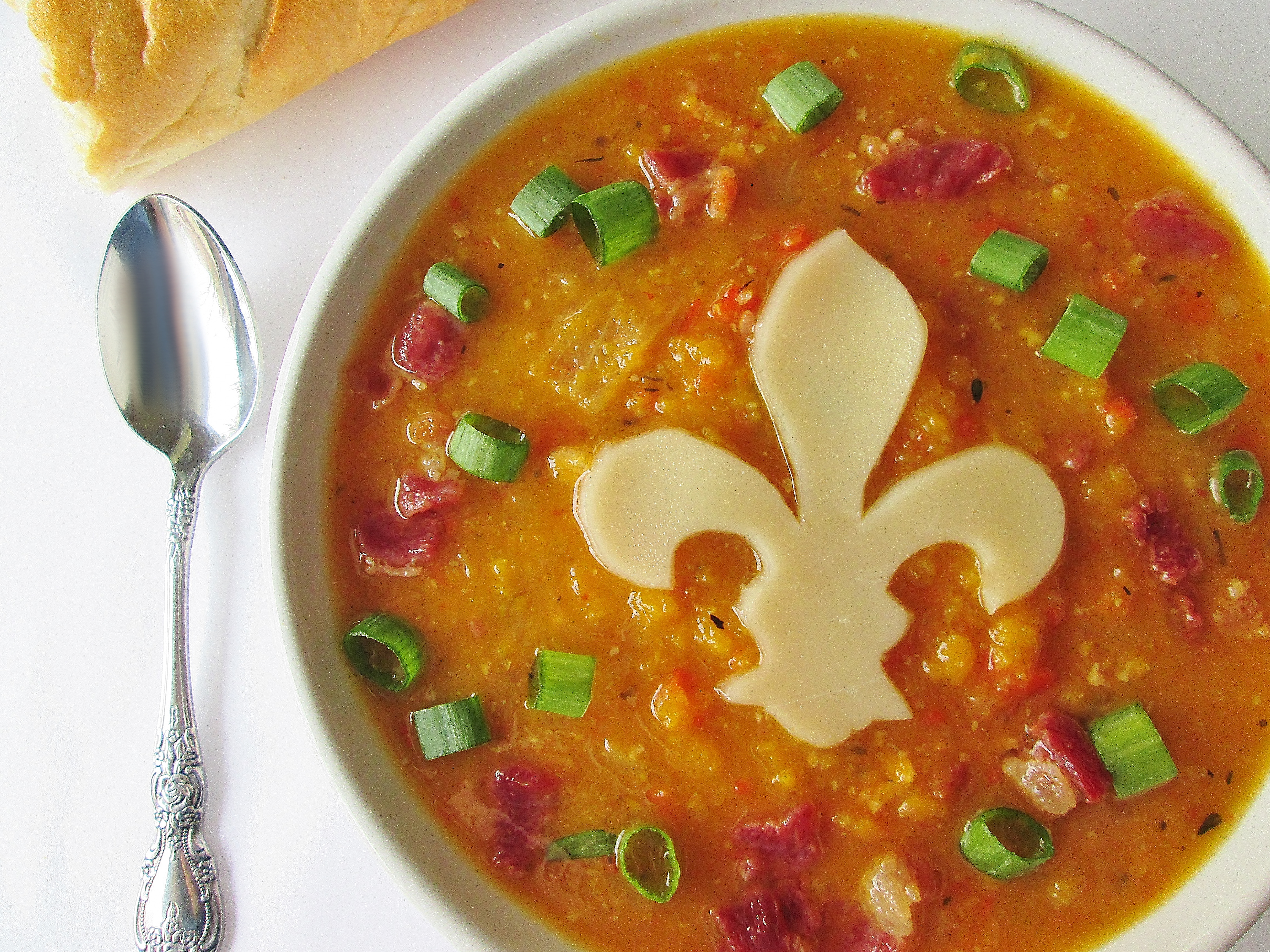 Since this is a Sleepy Hollow recipe, I had a grand scheme to serve this soup in roasted pumpkin bowls. It would be a perfect nod to the headless horseman’s jack-o-lantern; plus, it would look seriously cool in the photos! Alas, it wasn’t meant to be. Every single grocery store I visited in a 20-minute radius of my house sold out of pie pumpkins two weeks ago and won’t be getting any more this season. Ergh!!! So I shelved my dreams for the perfect Pinterest photo and bought a ceramic pumpkin bowl instead. Pretty darn cute, if I do say so myself…but I’m still considering retaking the photos next year when I can get real pumpkins again!