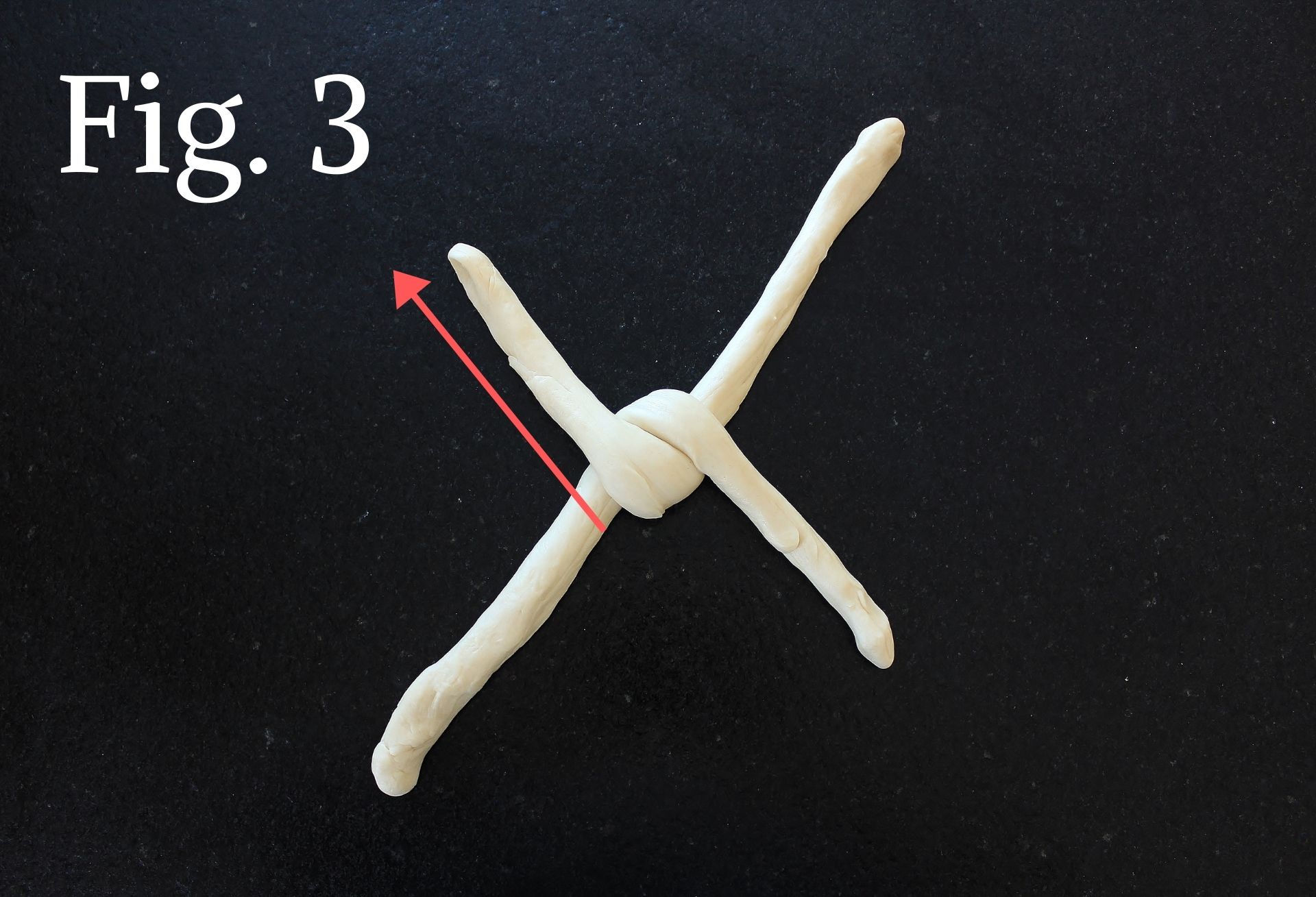- Take one piece and cut it in half. Roll each half into a 10-12 inch coil. Lay the coils in the shape of an “X” (Fig. 1).