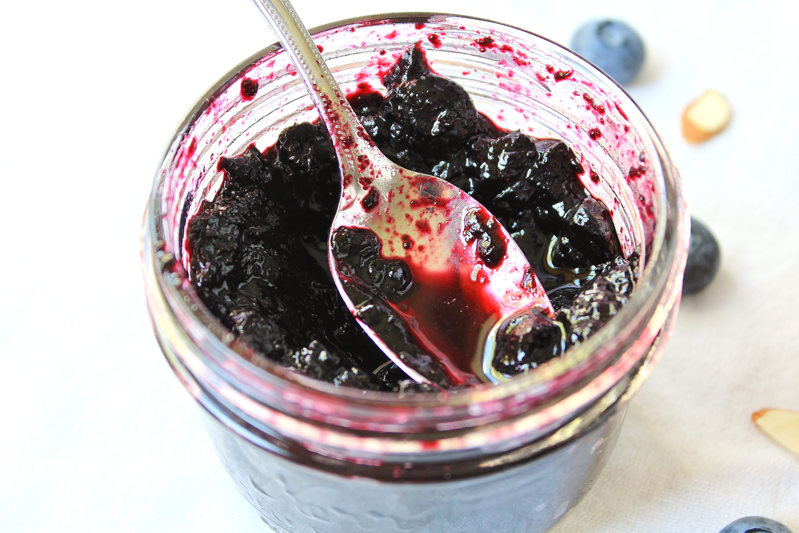 - FOR THE JAM. To make the jam, place all the ingredients in a medium-sized saucepan. Bring to a boil over medium heat, stirring regularly. Reduce heat to medium-low. Mash blueberries thoroughly with the bottom of a heavy glass. Simmer for 30 minutes, stirring regularly. Transfer to a sealable container. Allow to cool, uncovered, on the counter until the jam reaches room temperature. Cover and chill until ready to use.