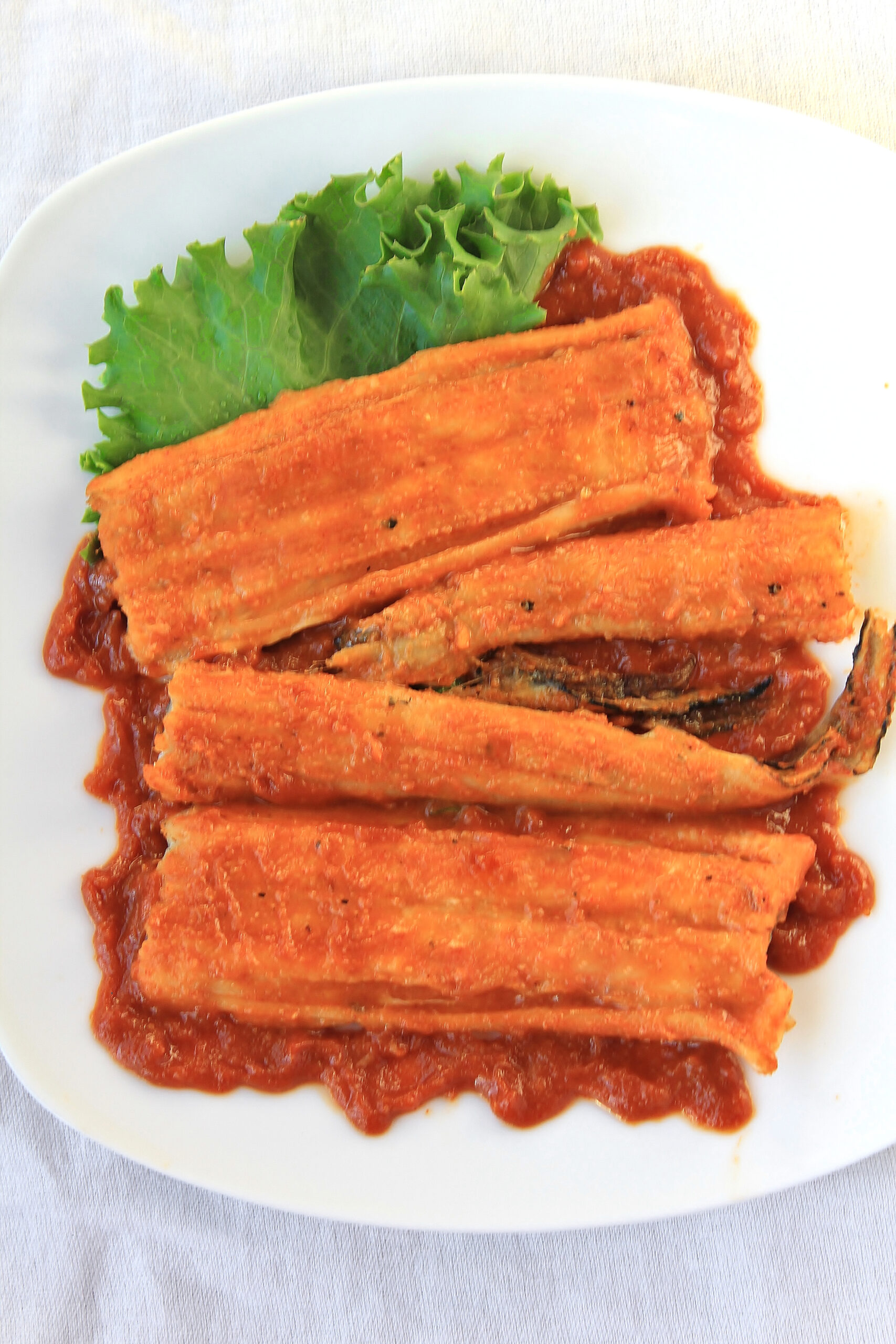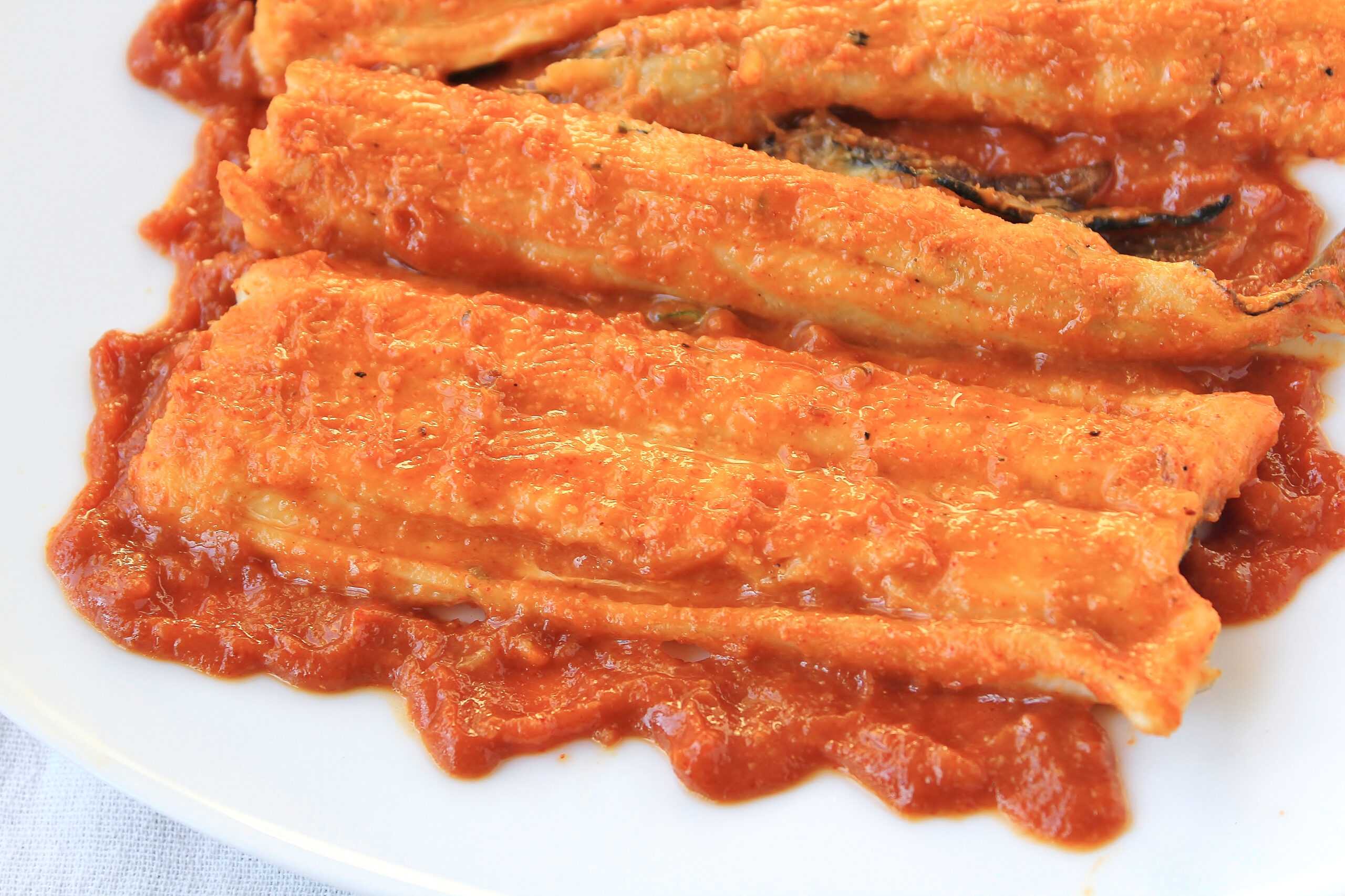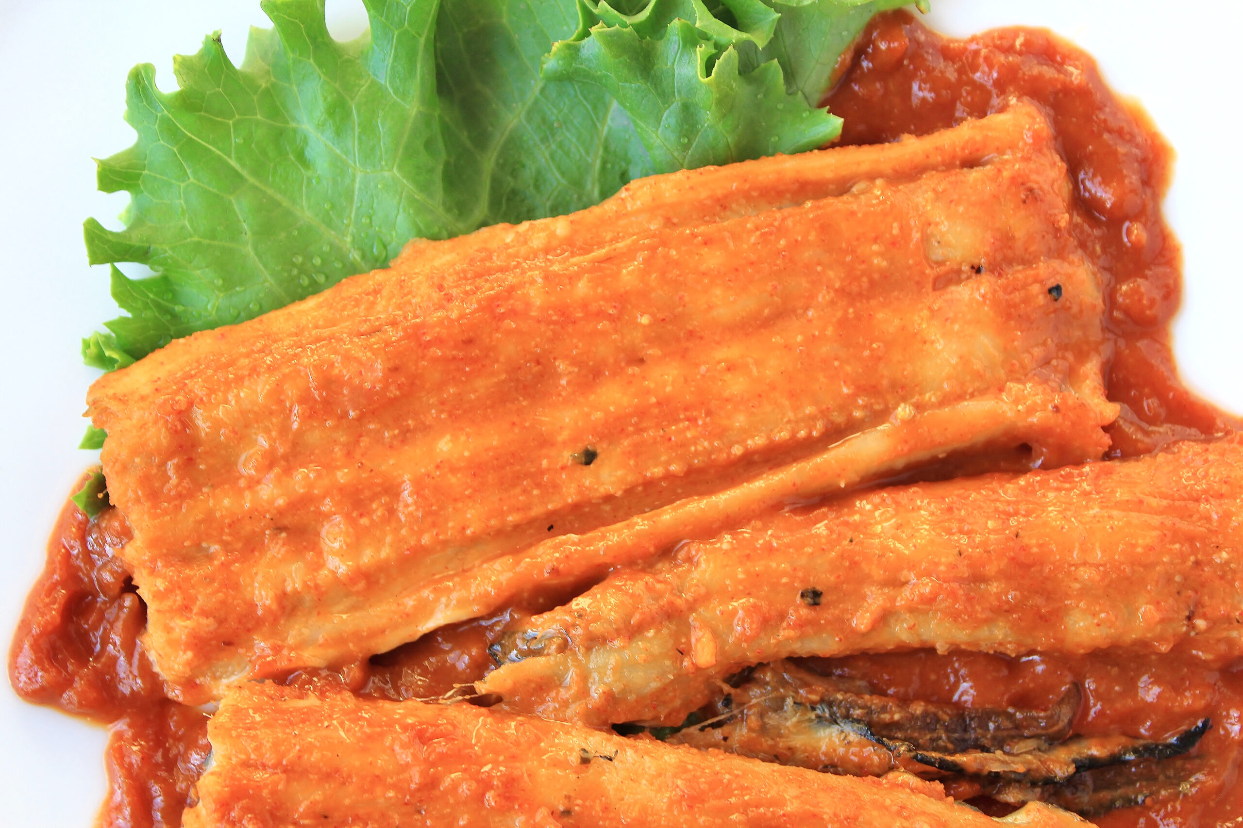 - Cut the eel fillets in half width-wise and brush generously with spicy sauce on both sides. Lay skin side down on the baking sheet (this will help prevent the ends from curling). Cook for 15 minutes or until the internal temp is at least 145°F. Brush the tops with sauce every 5 minutes.
