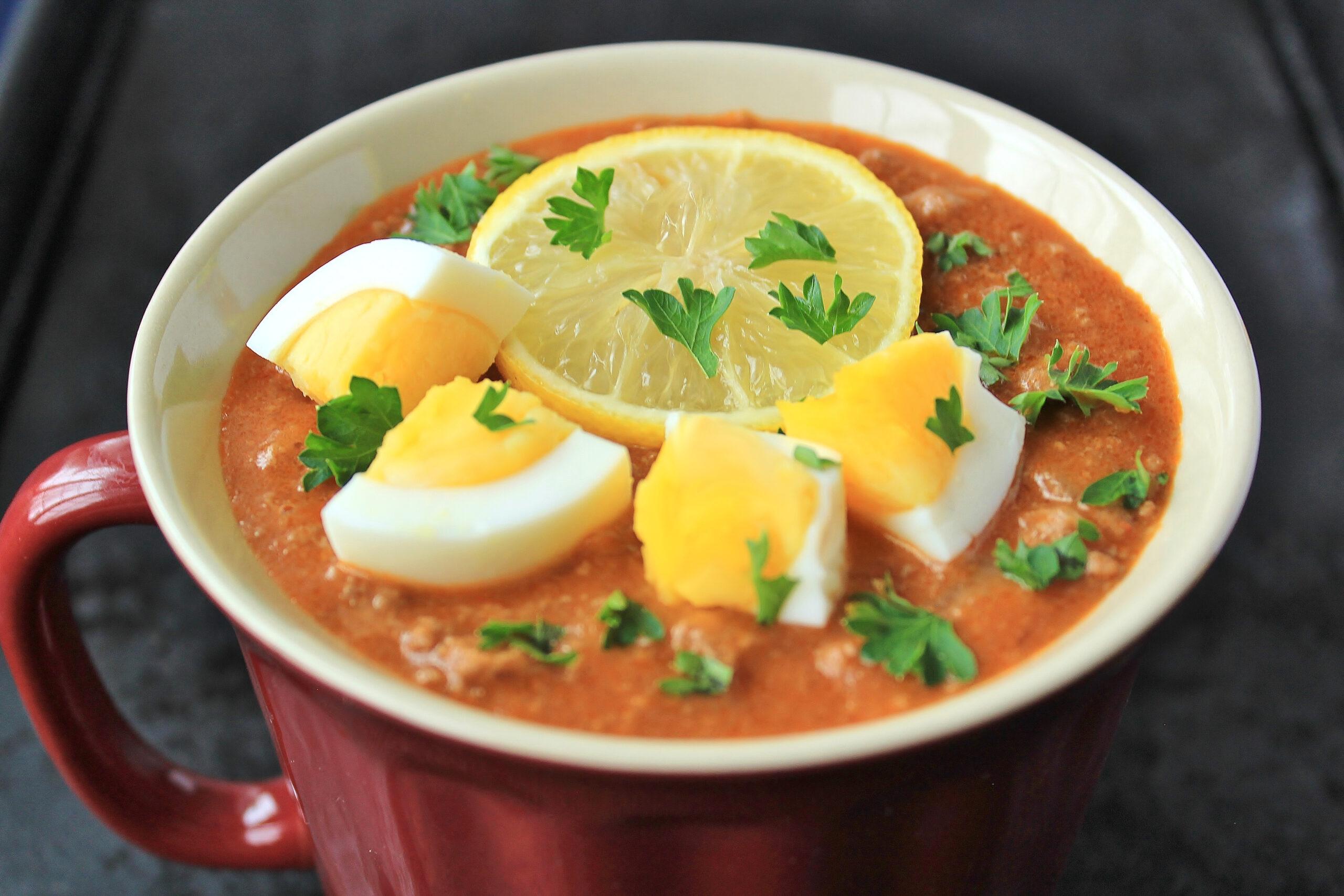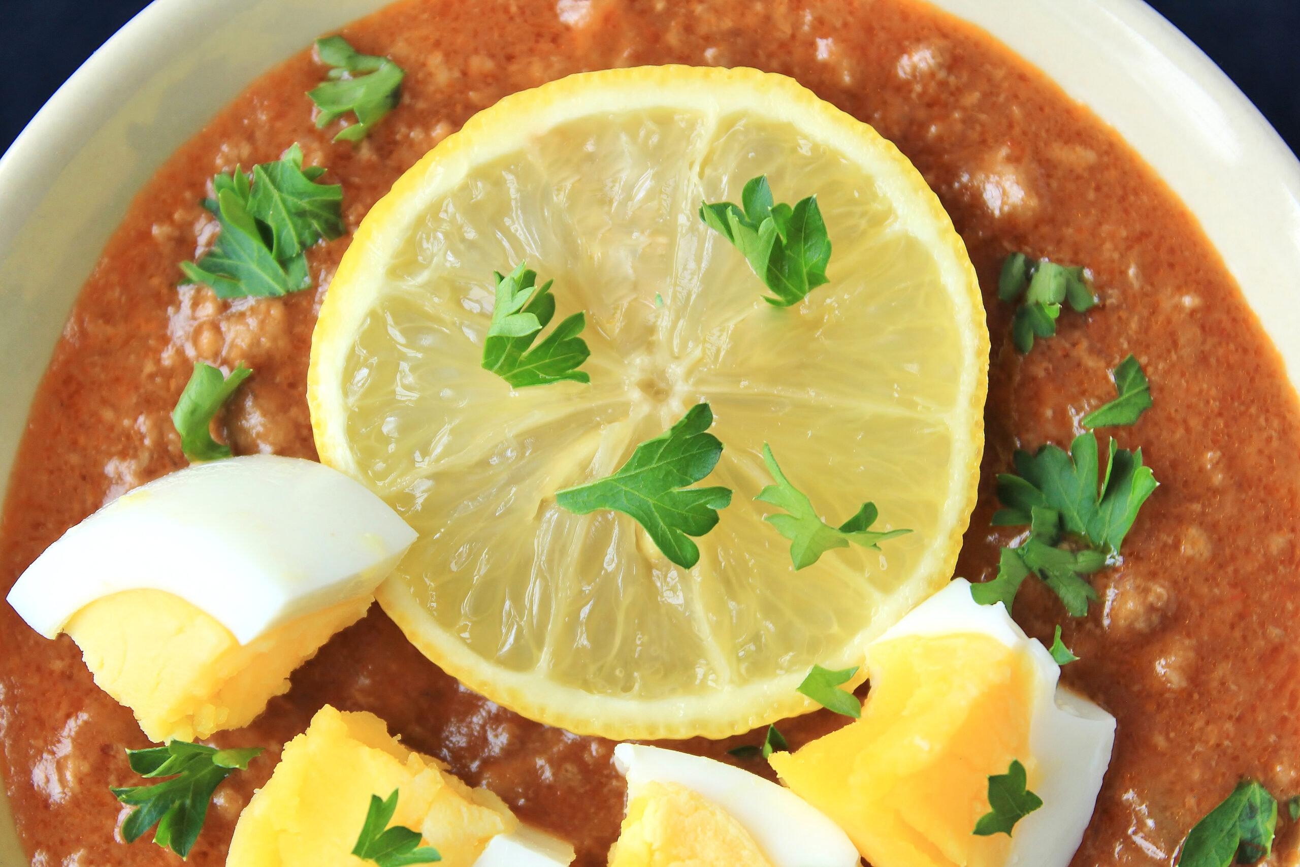 - Stir in lemon juice and cook 30 minutes more. Stir in the sherry and top with chopped hardboiled eggs, lemon slices, and parsley as desired.