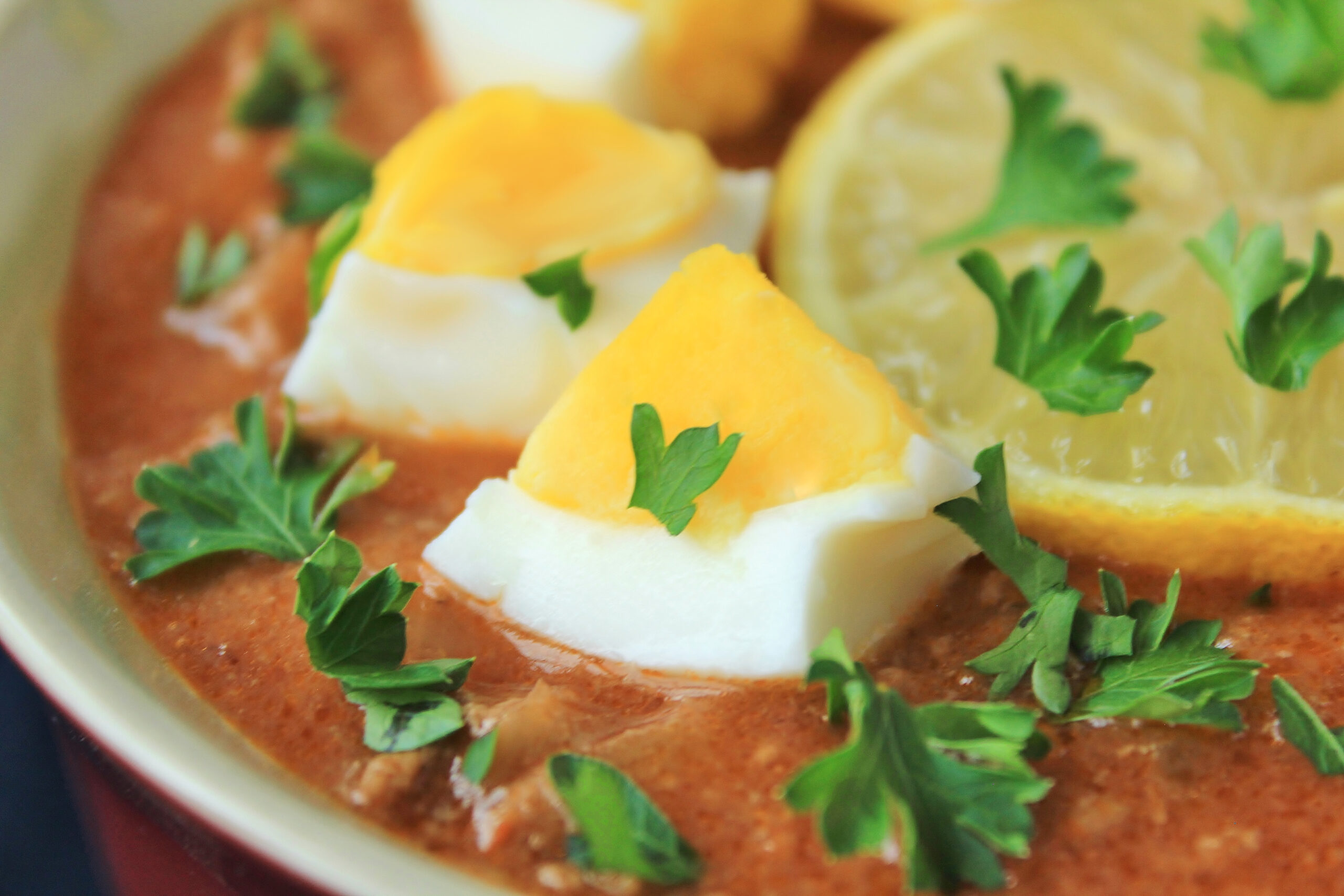- Stir in lemon juice and cook 30 minutes more. Stir in the sherry and top with chopped hardboiled eggs, lemon slices, and parsley as desired.