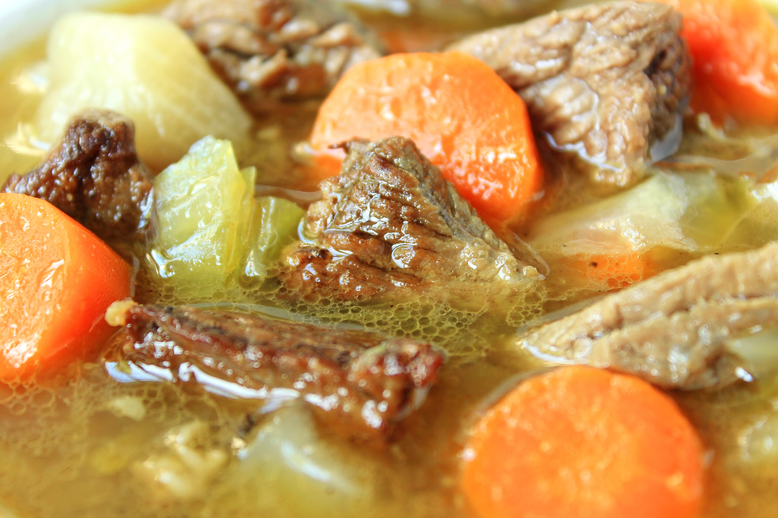 I browned the beef, cooked the leeks until soft in the remaining beef fat, and threw everything together to simmer until the veggies grew tender. As is my habit with soups and stews, the broth was my favorite part. I couldn’t believe how rich it was! I’ve already made it a second time, and I think a third batch is in my near future. 😀