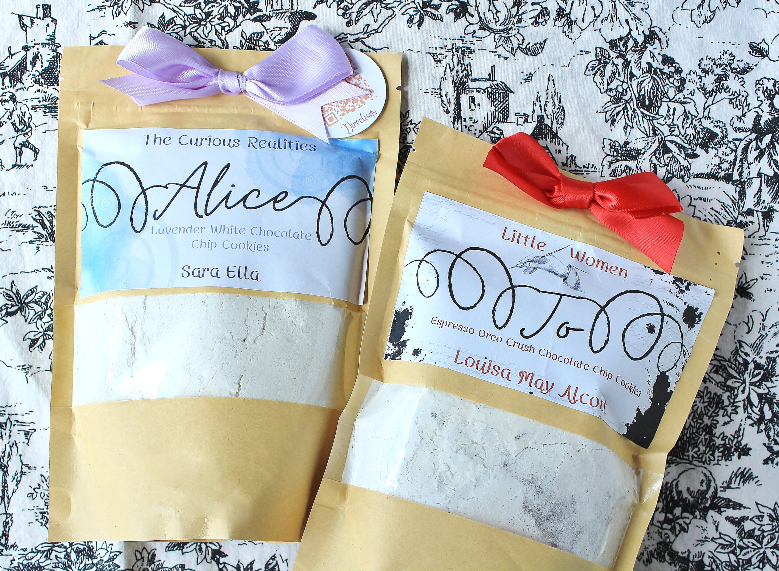 I emailed the owner, Amanda, and asked if she would be willing to do a co-promotion, and she said yes! A couple short weeks later, I was in my kitchen making two of her classic lit cookie mixes: the Alice and the Jo. I chose these because I have menus inspired by ALICE IN WONDERLAND and LITTLE WOMEN in my most recent cookbook, A LITERARY PICNIC. I also wanted to try these two mixes because the flavors are very different from each other, offering a good example of the range of flavors available.
