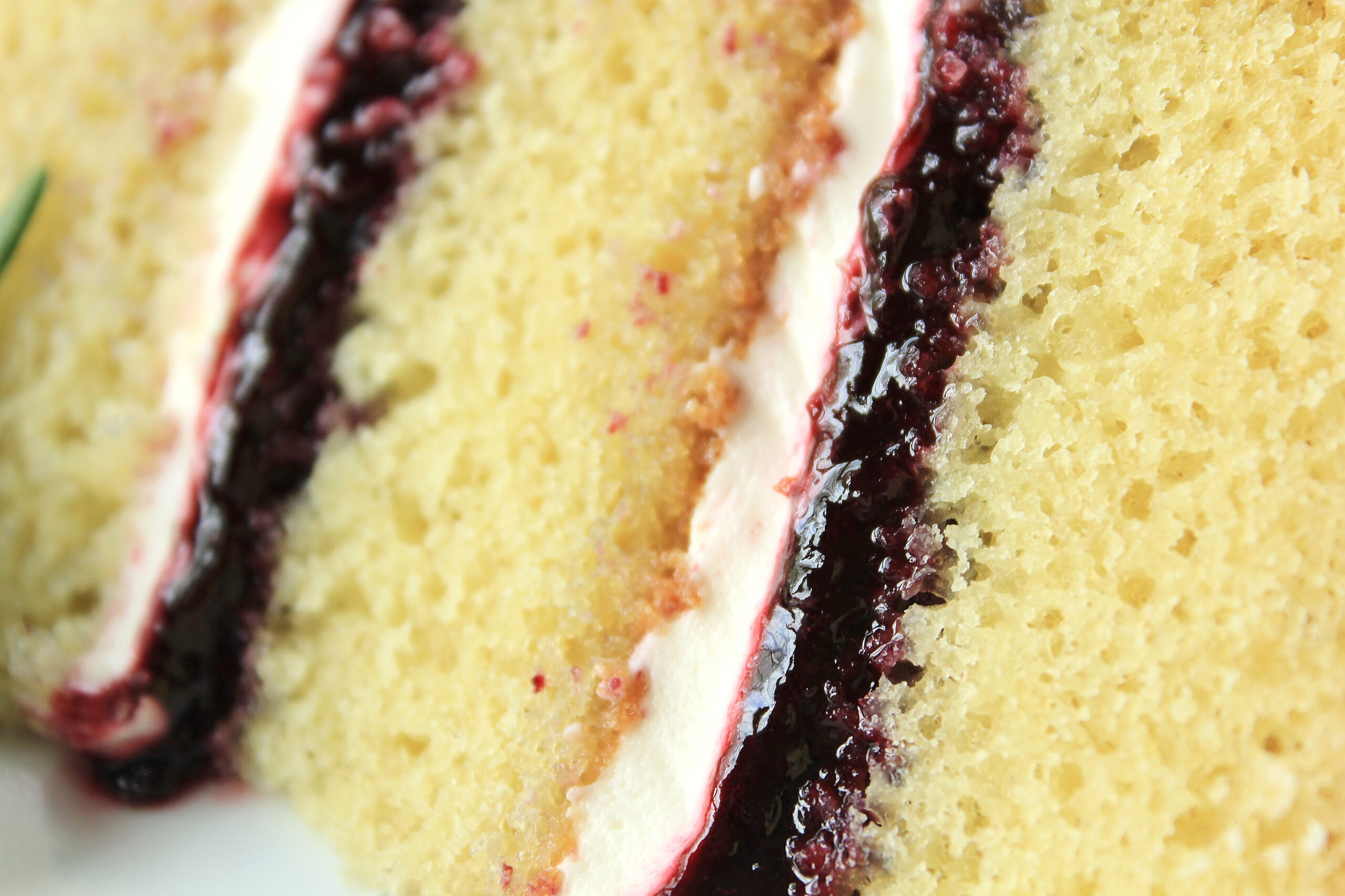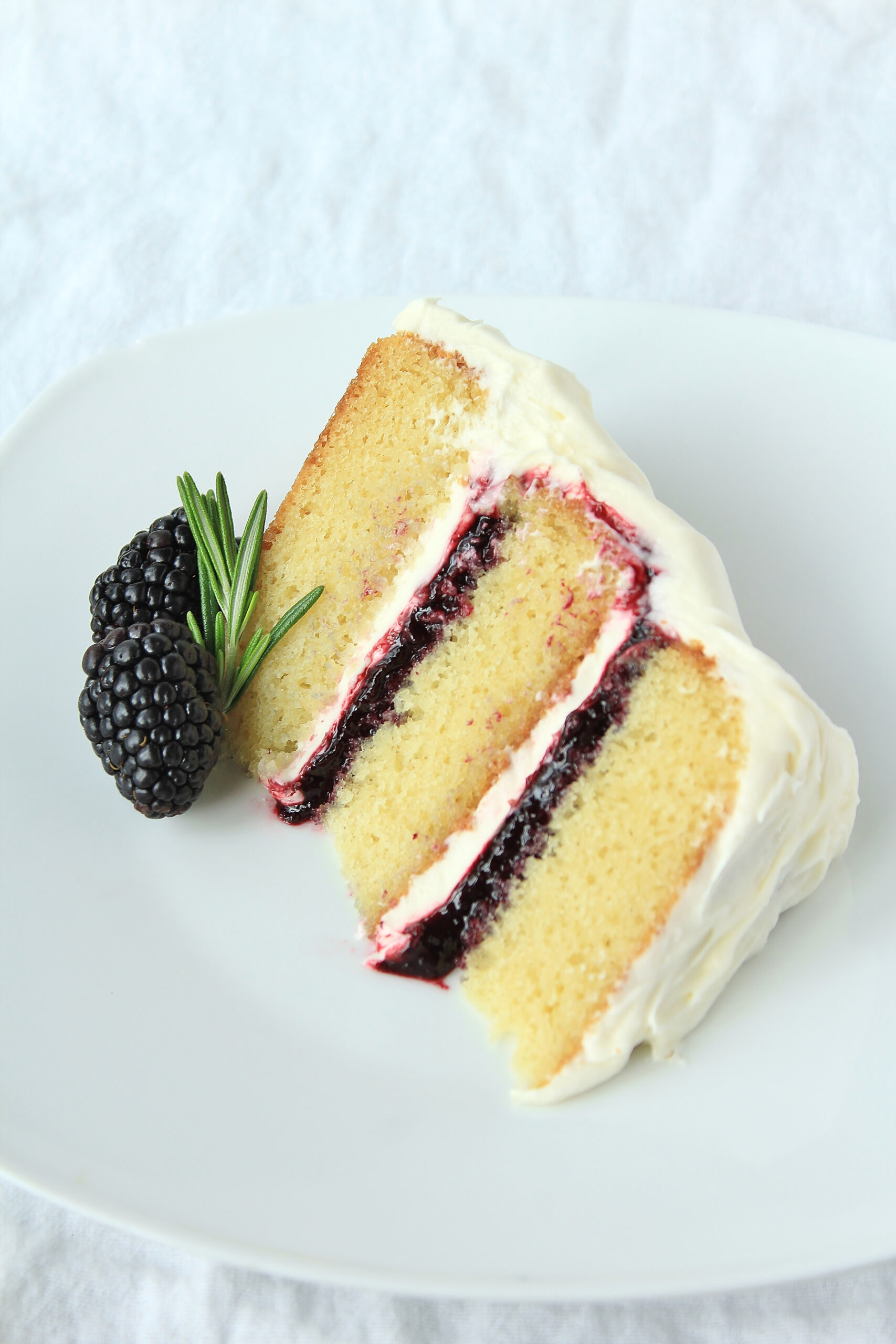 Vanilla Cake with Cream Cheese Frosting and Rosemary-Infused Blackberry Jam Filling