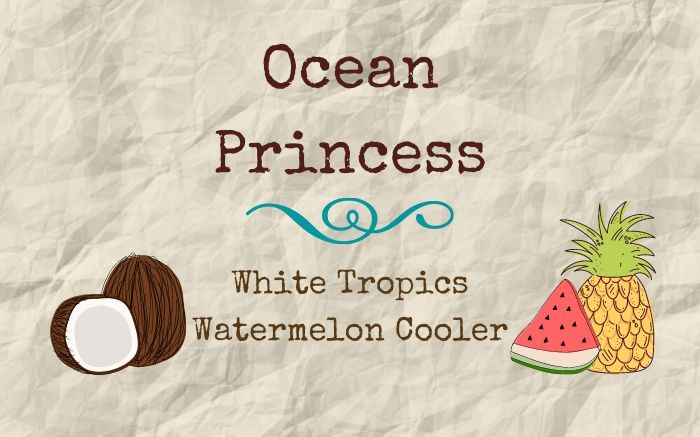 I loved the idea of an ocean-themed blend, so I started with White Tropics, which is a white tea flavored with pineapple and coconut. Those fruits are perfect since they’re both mentioned in the book and also have distinct flavors that come through even in a delicate white tea. For added depth, I mixed in my favorite green tea: Citron Green, which has notes of lemon and orange. I love how the citrus plays off the tropical flavors without completely overpowering them. For a flavor boost, I added dried coconut, dried pineapple, and lemon balm.
